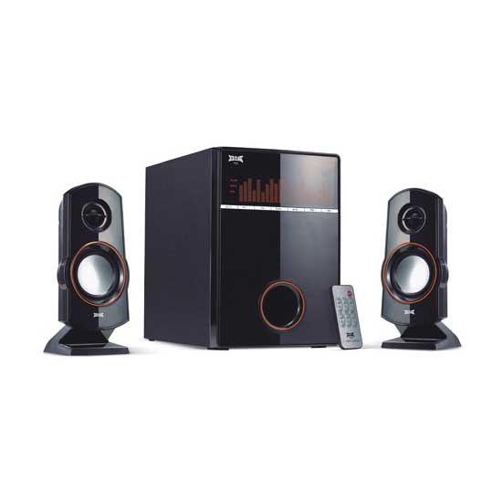 This multimedia speaker system comes with a glazed ABS panel and an LED display decorated with a red frame. The vertical wooden subwoofer with 5.25-inch bass units provides a powerful, flexible and expressive sound effect. The USB and SD card slots at the front panel allow easy connection.