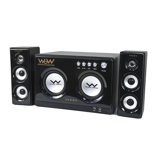 This is a speaker with double bass power and built-in microphone interface for karaoke.The wooden case of the speaker comes with piano coating and beautifual acoustic wave pattern. The high quality of MFD amplifier chip make subwoofer more powerful.