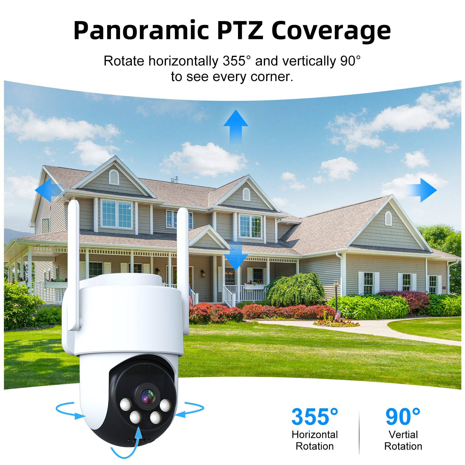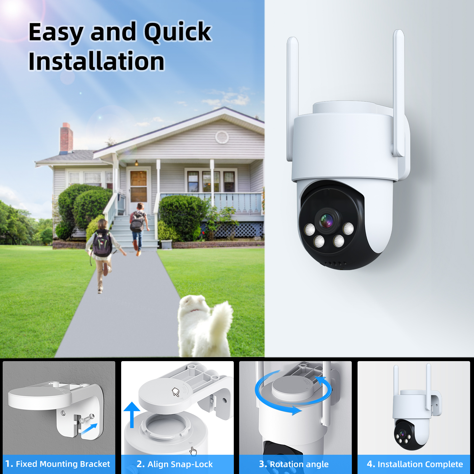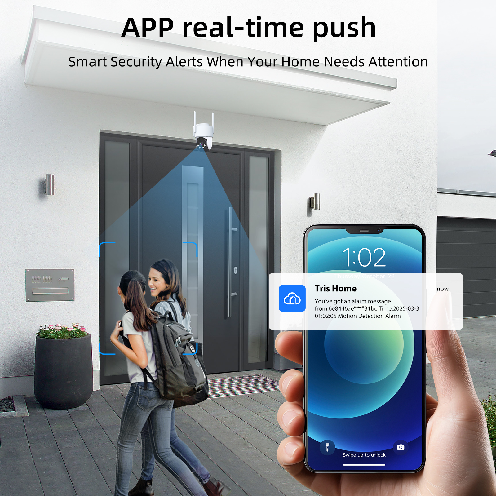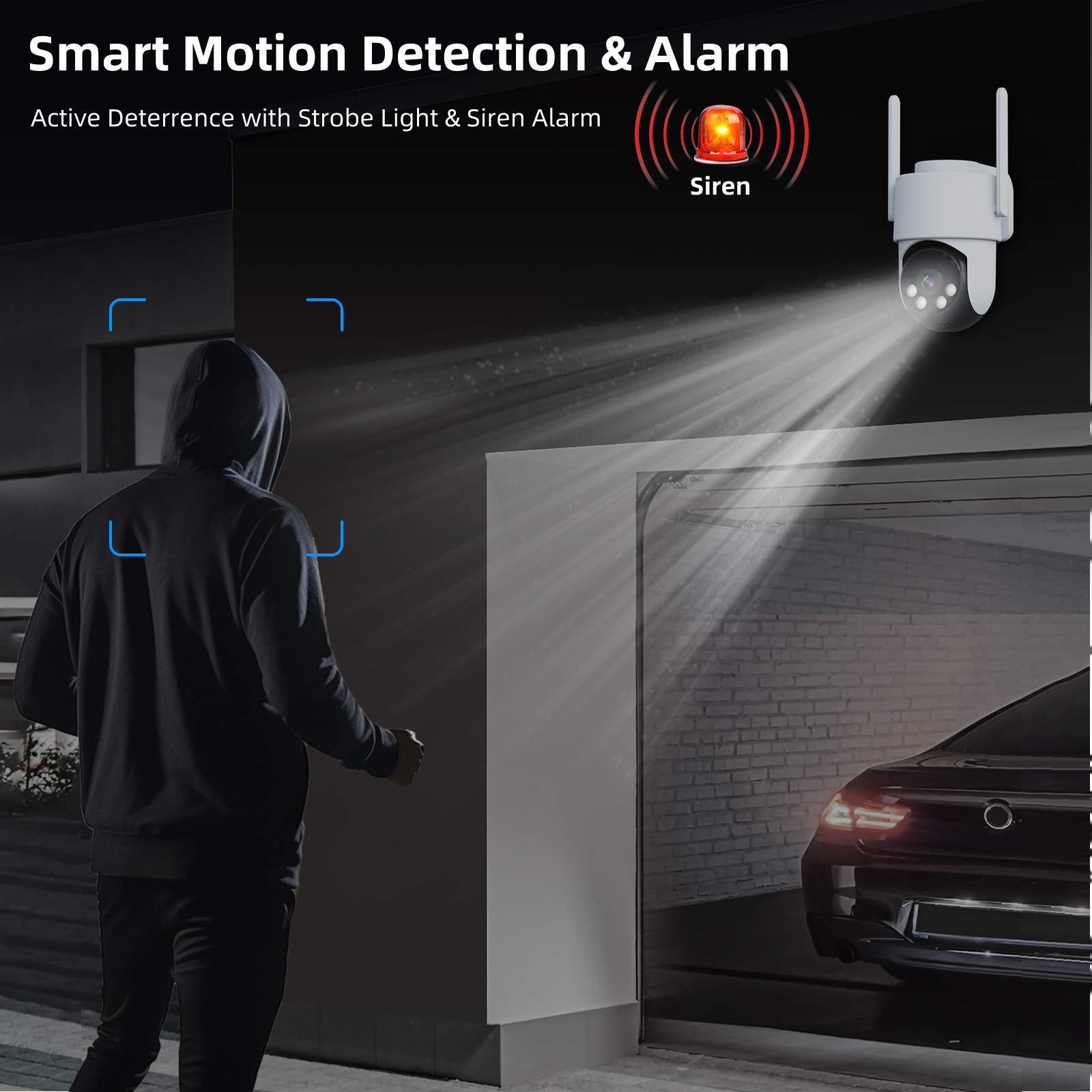 With smart motion detection, the camera automatically sends alerts to your smartphone when movement is detected. It also includes a built-in siren for added security.