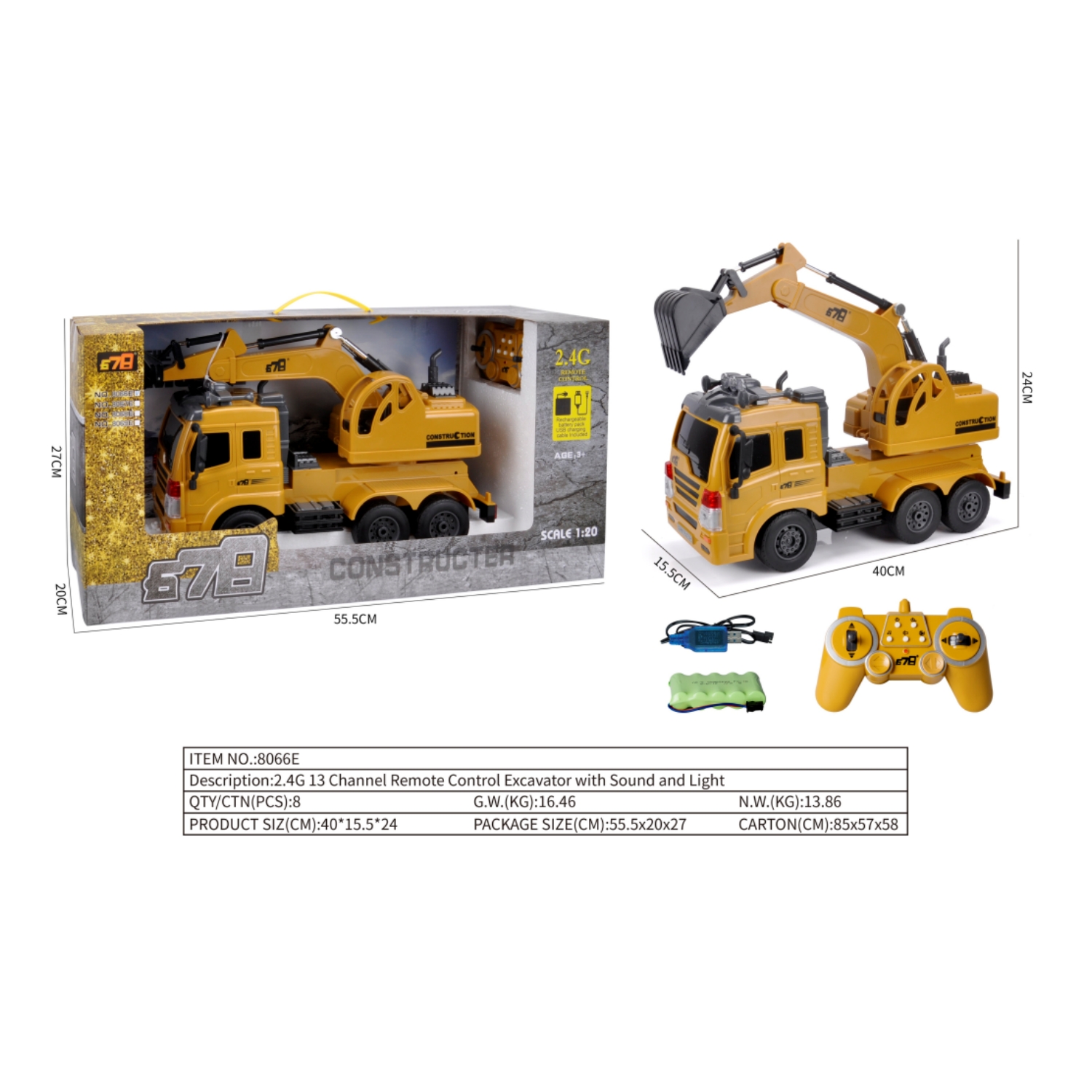 excavator*1, remote controller*1, 6V rechargeable battery*1, USB charging cable*1