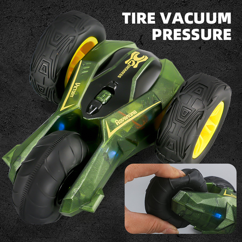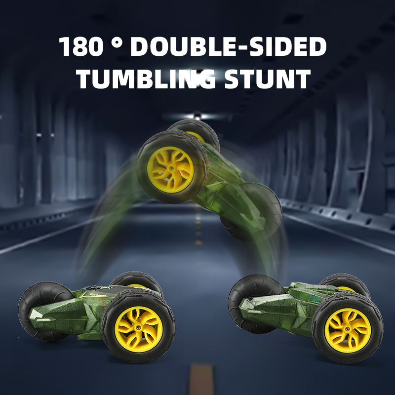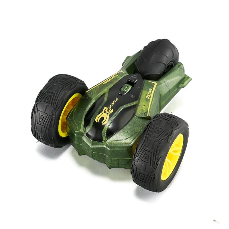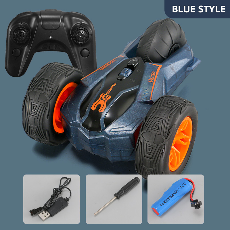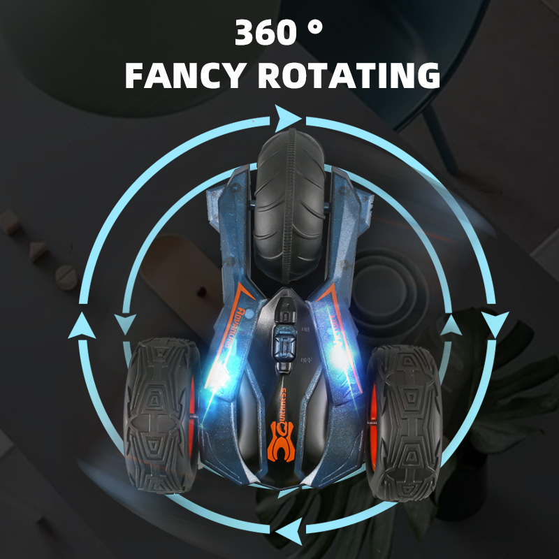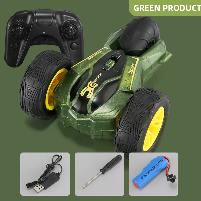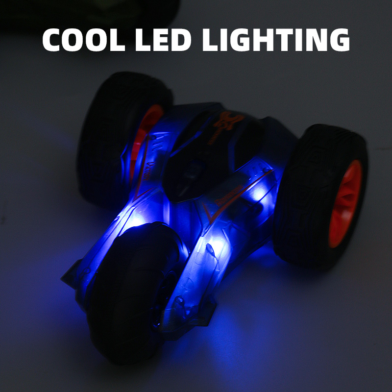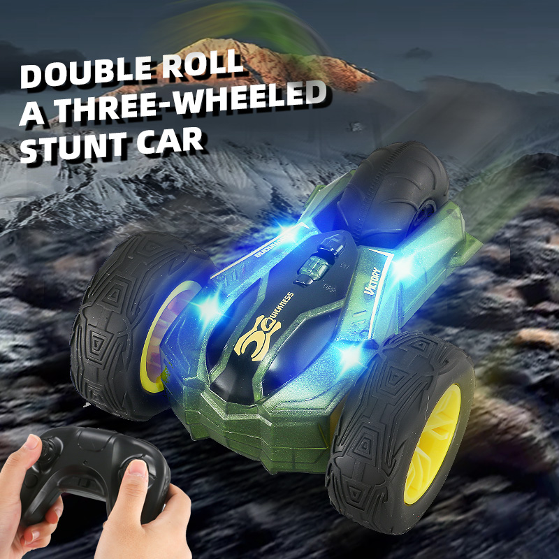 2.4G 3 WHEELS RC STUNT CAR 1- Play time: 25min,2- Charging Time: 1.5h,3- Control distance: 40M,4- Car battery: 3.7V 500 mAh rechargeble battery (included),5- Remotor Battery: 1.5V AAx2 battery (not included),6- Accessory: USB charger x 1, screwdriver x 1, 7- Product size: 18x14.5x7.5cm,8-Function:2.4G,transparent body, characteristic light,go forward/back, turn left/right,double side filp,360 spins,180 rolling,demo