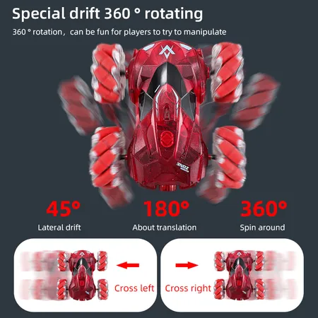 2.4G DOUBLE SIDE DRIFT STUNT CAR 1- Play time: 15-20 mins,2- Charging Time: about 140 mins,3- Control distance: 15-20M,4- Car battery: 3.7V 900mAh rechargeble battery (included),5- Remotor Battery: 1.5V AAx2 battery (not included),6- Accessory: USB charger x 1,7- Product size: 19x20 x 8cm,8-Function:2.4G,light,4WD lateral walking,4WD drift,go forward/back,turn left/right,double side filp, 360 spins,demo