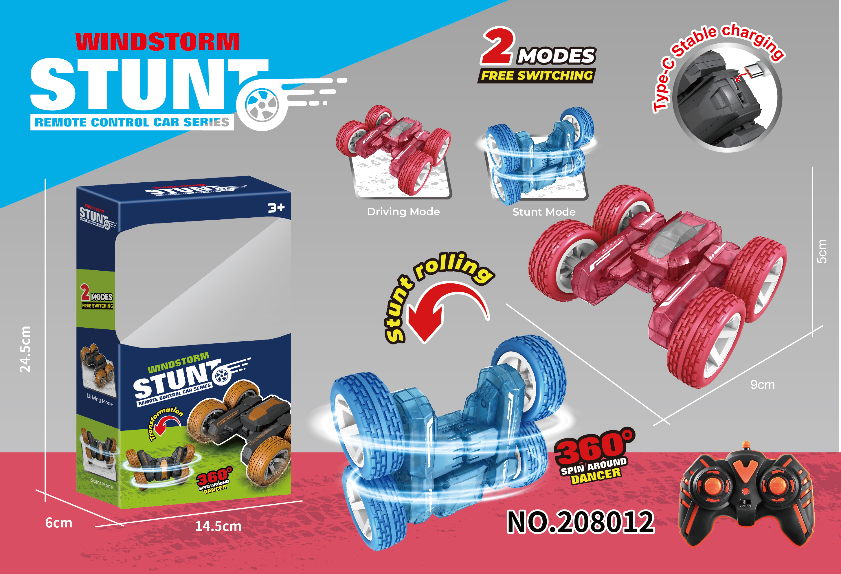 2.4G LIGHT MINI FOUR WHEEL DOUBLE SIDE BLOOM STUNT CAR,1- Play time: 15-20 mins,2- Charging Time: about 60 mins 3- Control distance: 15-20M,4- Car battery: 3.7V 300mAh rechargeble battery (included),5- Remotor Battery: 1.5V AAx2 battery (not included),6- Accessory: USB charger x 1,7- Product size: 10x 9 x 5cm,8-Function:2.4G,go forward/back, turn left/right,double-sided driving,360 spins,bloom stunt,characteristic light