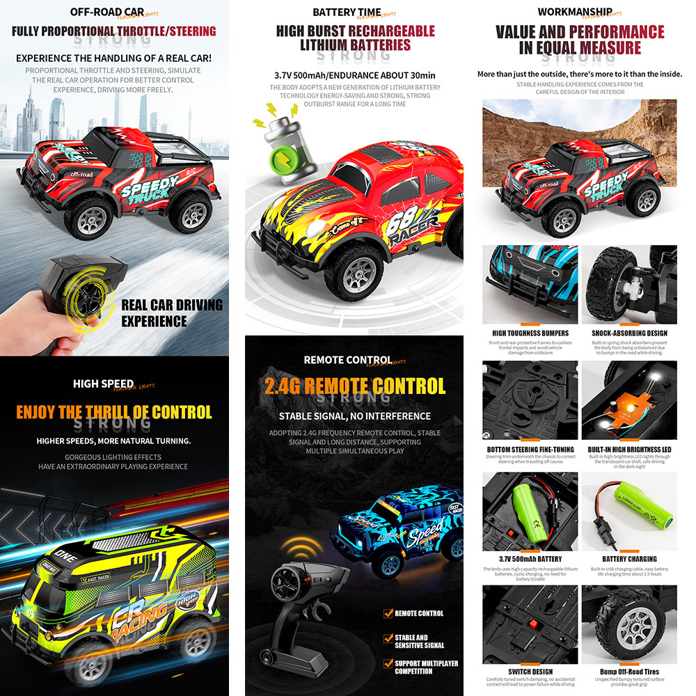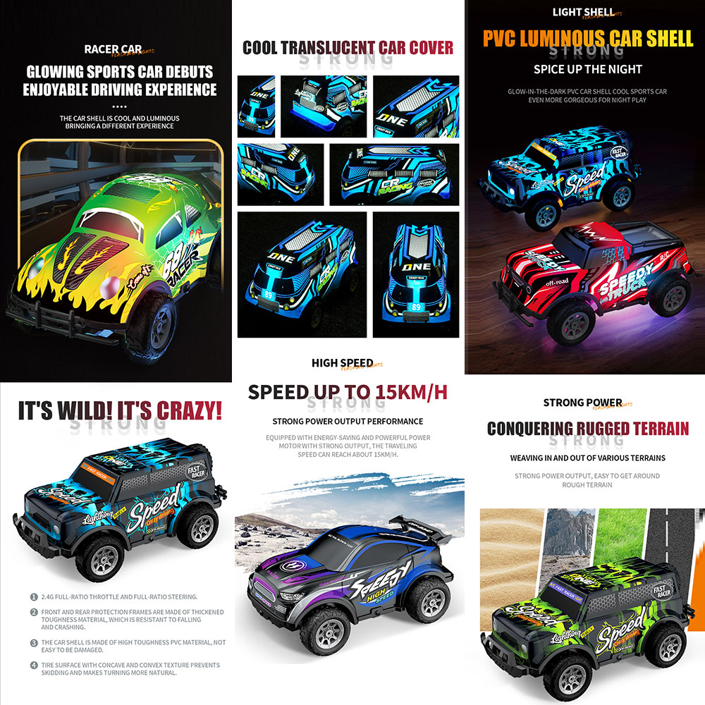 2.4G Remote Control Racing Toys Car With LED Light Glow in Dark RC toy car
