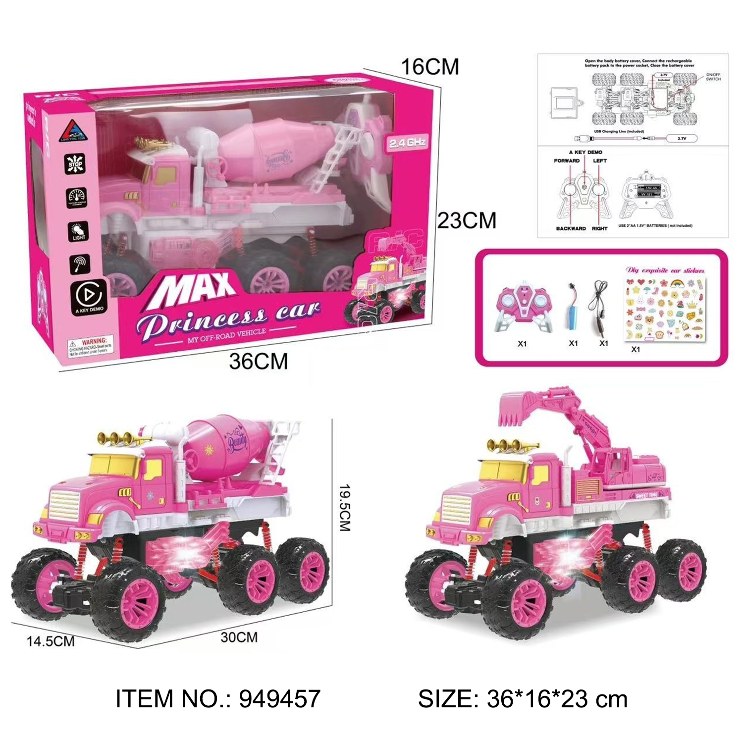 2.4G WILD 4 CHANNELS R-C  6 WHEELS CAR WITH LIGHTS(CAR USE 3.7V INCLUDED,REMOTE USE 2 PCS AA NOT INCLUDED),TEST REPORTS:EN71 PART1-2-3 AND PHTHALATE TEST AND EN62115 AND EN60825 AND ASTM AND HR4040 AND CPC AND PAHS.