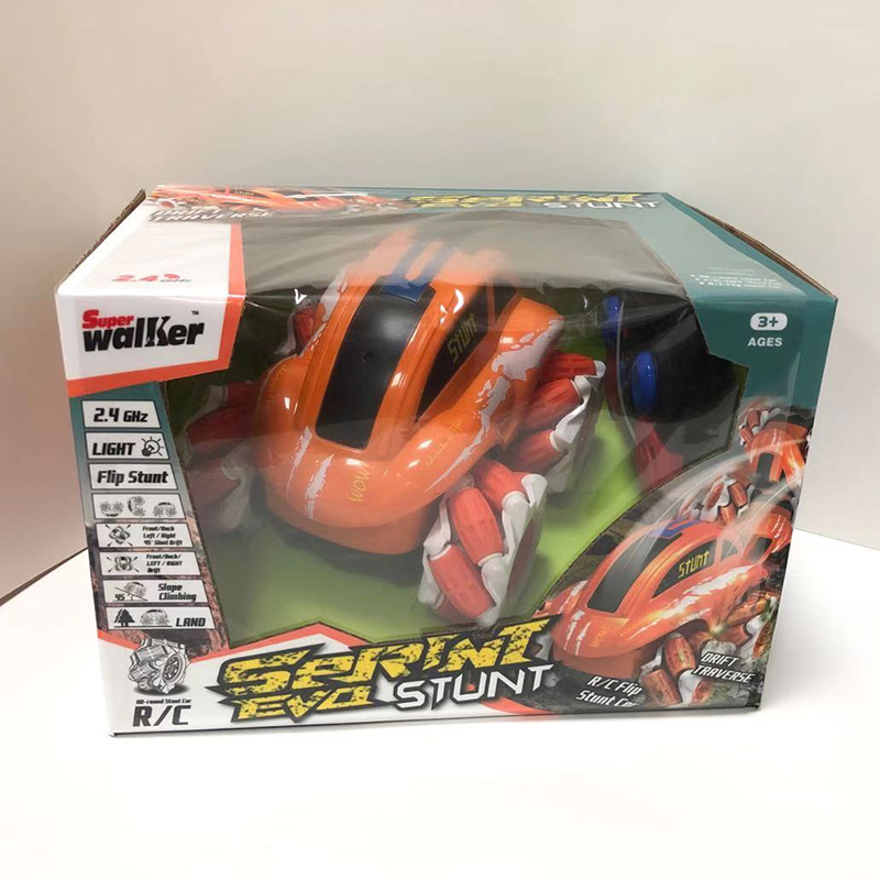 The olive wheel 4 drives the remote control, which can rotate sideways on the spot and flip 360 degrees, which is suitable for operation on land, grass, mountain and other terrains. The remote control distance is about 50 meters, the charging time is 2-3 hours, and the playing time is about 20 minutes