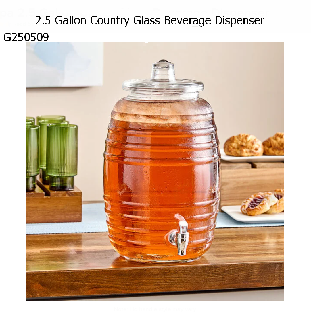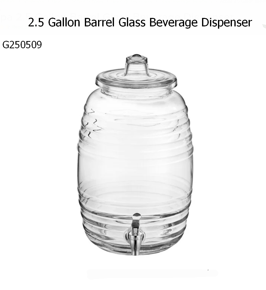 Use this Acopa 2.5 gallon barrel glass beverage dispenser to serve your signature, chilled beverages in style.