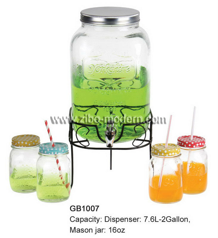 2 Gallon Mason Glass Jar Beverage Dispenser With Stand