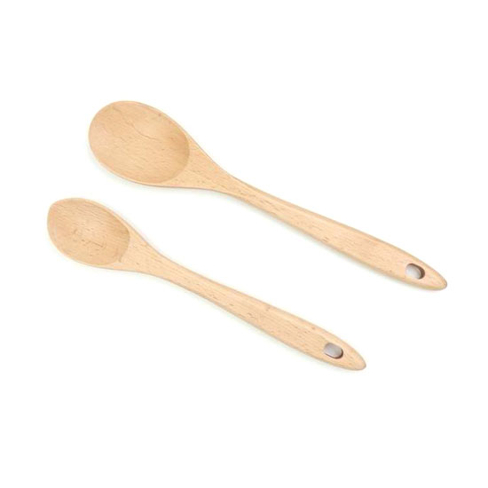 This set of spoons is made of quality beech wood. The refined wooden finish flaunts natural and minimalist charm. The two spoons come in different sizes for your convenient use.