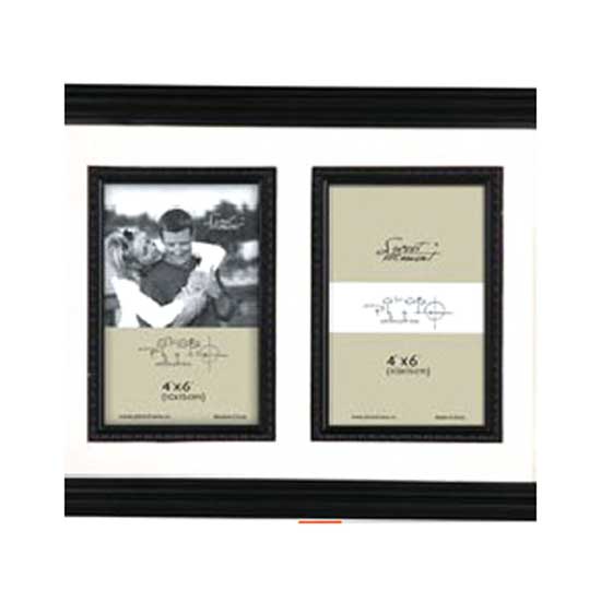 Featured here is a simplistic picture frame designed in black and white. This elegant frame accommodates two photos for your convenience. This beautiful picture frame is an ideal decoration for your home and offices.