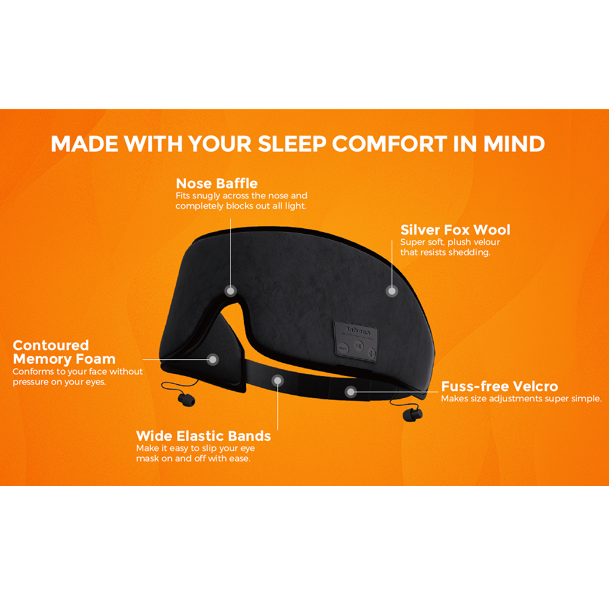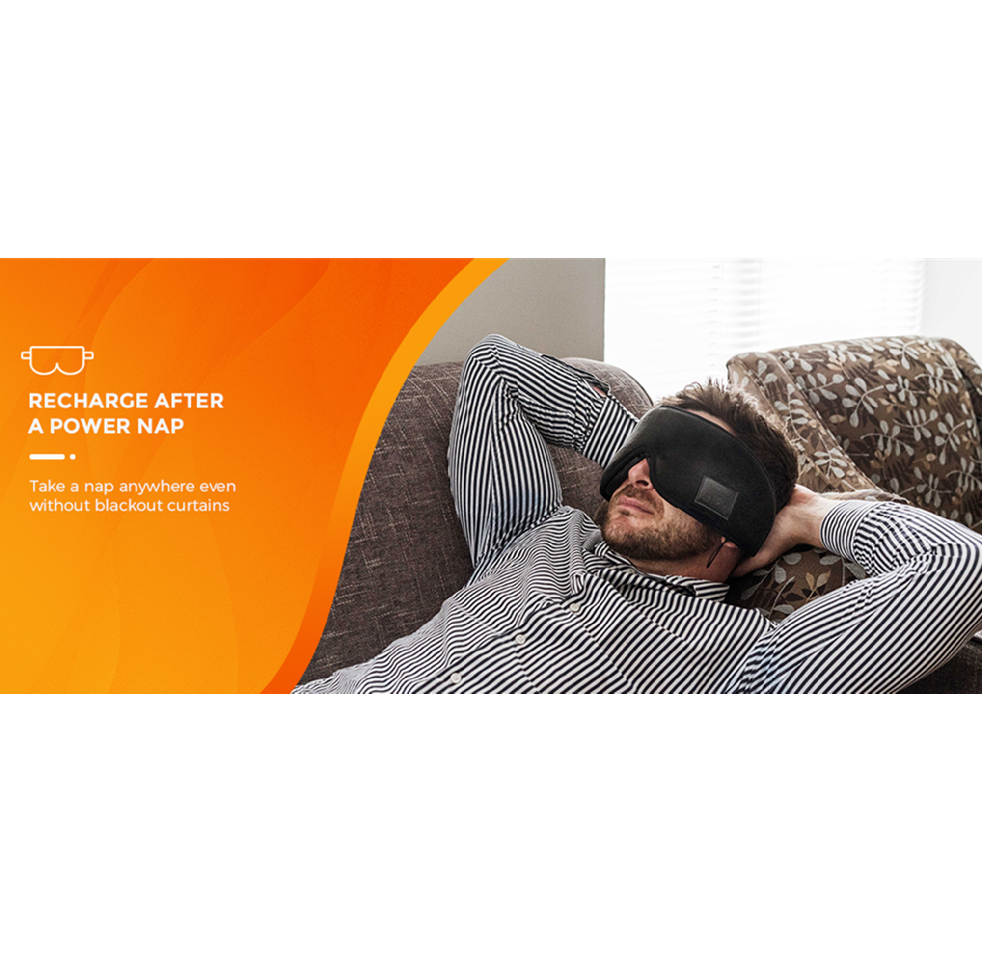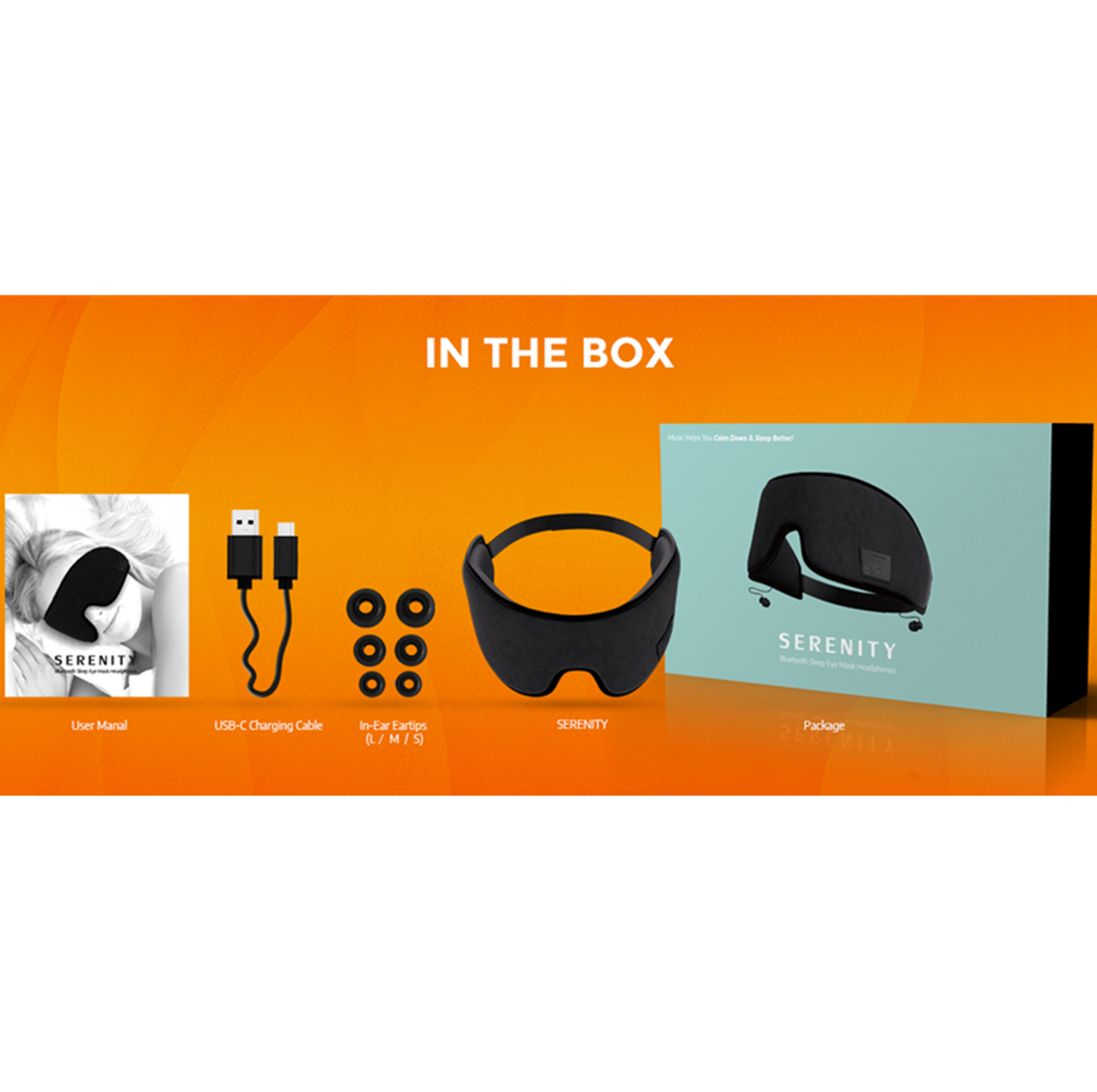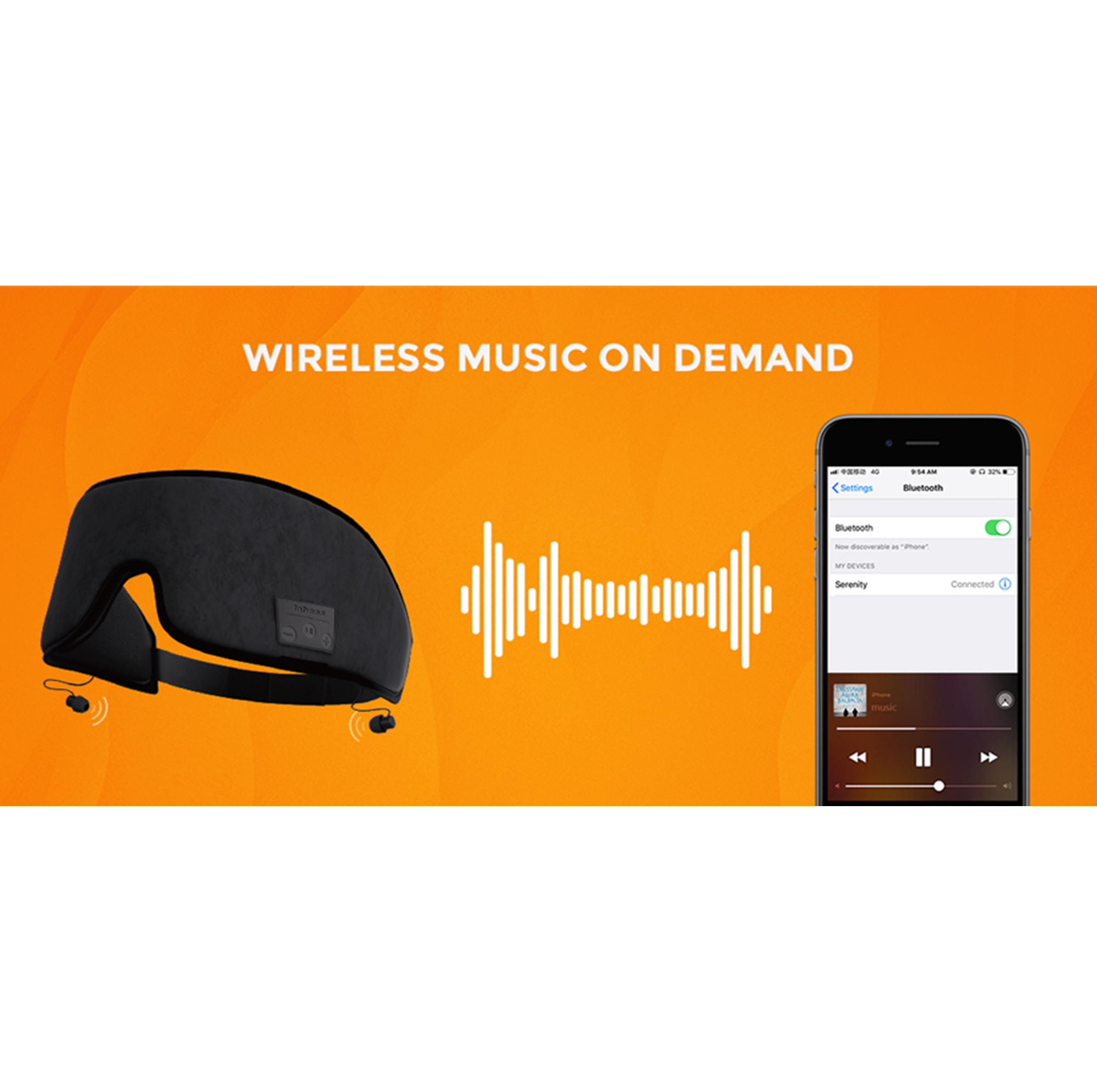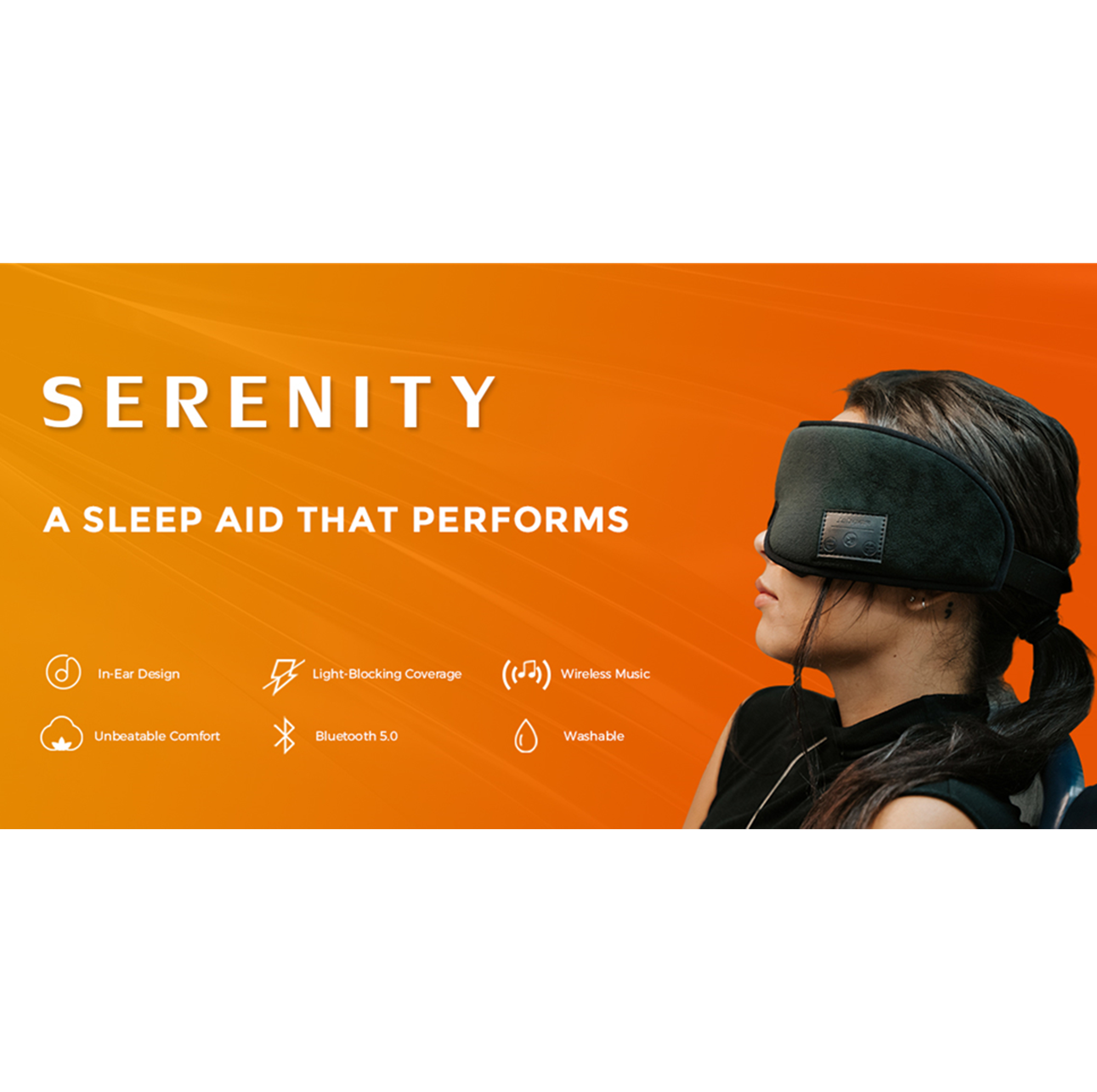 SERENITY is the 2-in-1 Bluetooth sleeping eye mask designed to help you sleep better. Our eye mask blocks out excess sound and light to improve your sleeping environment. On top of this, choosing your own music gives you a head start on relaxation, especially if you've had a stressful day. We feel that SERENITY will help take care of those worries for you, so you can get to sleep right away.