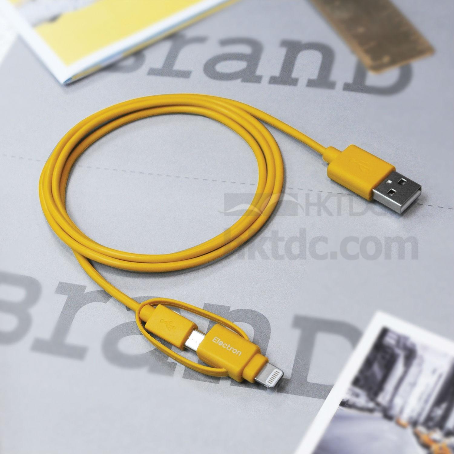 Unify your charging efforts across multiple platforms with this 2-in-1 connection cable. It features a versatile design constructed with interchangeable lightning and micro-USB connectors on one end and a USB connector on the other end. This 2-in-1 connection cable is durably made to provide long-lasting service life and to ensure maximum signal integrity.