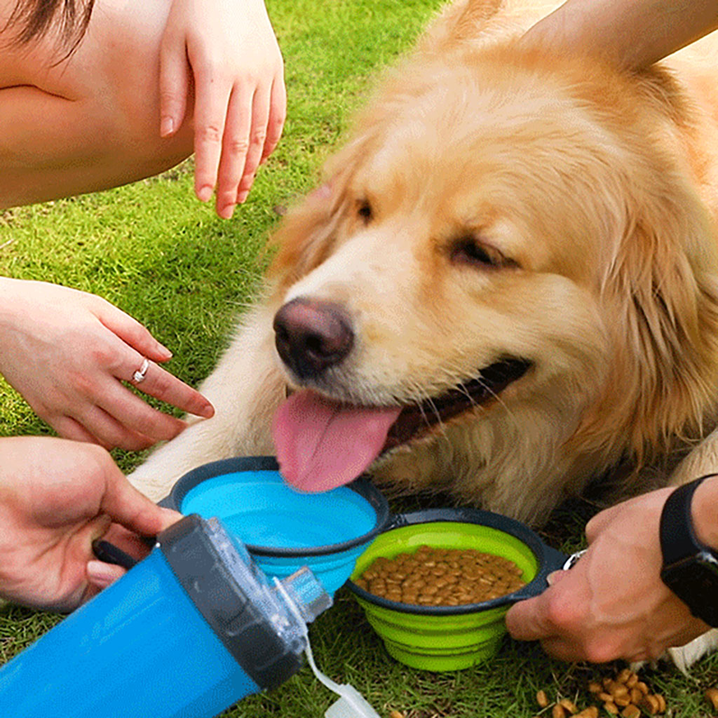 2-in-1 Pet Water Feeder & Food Dispenser w/ Folding Bowls