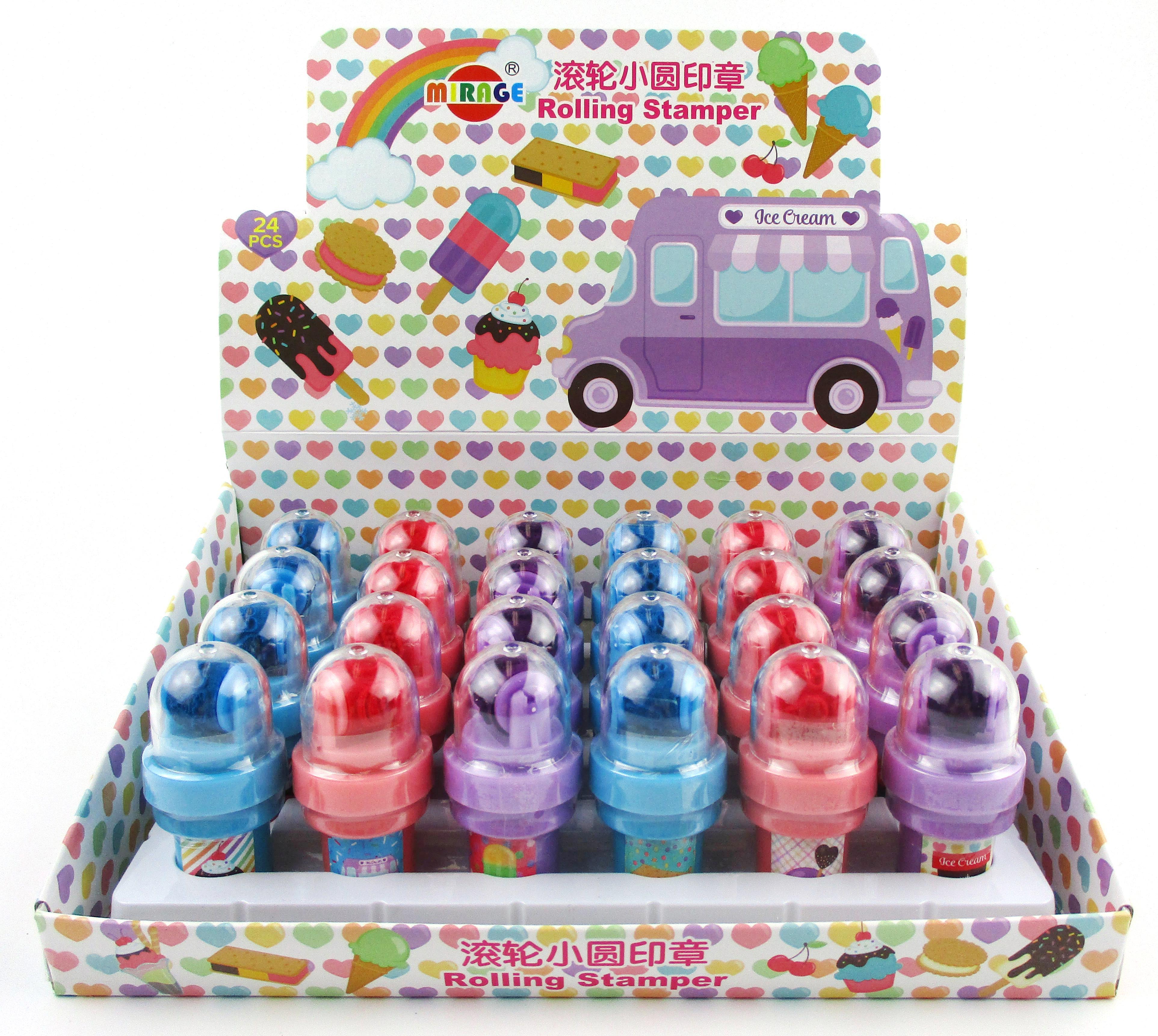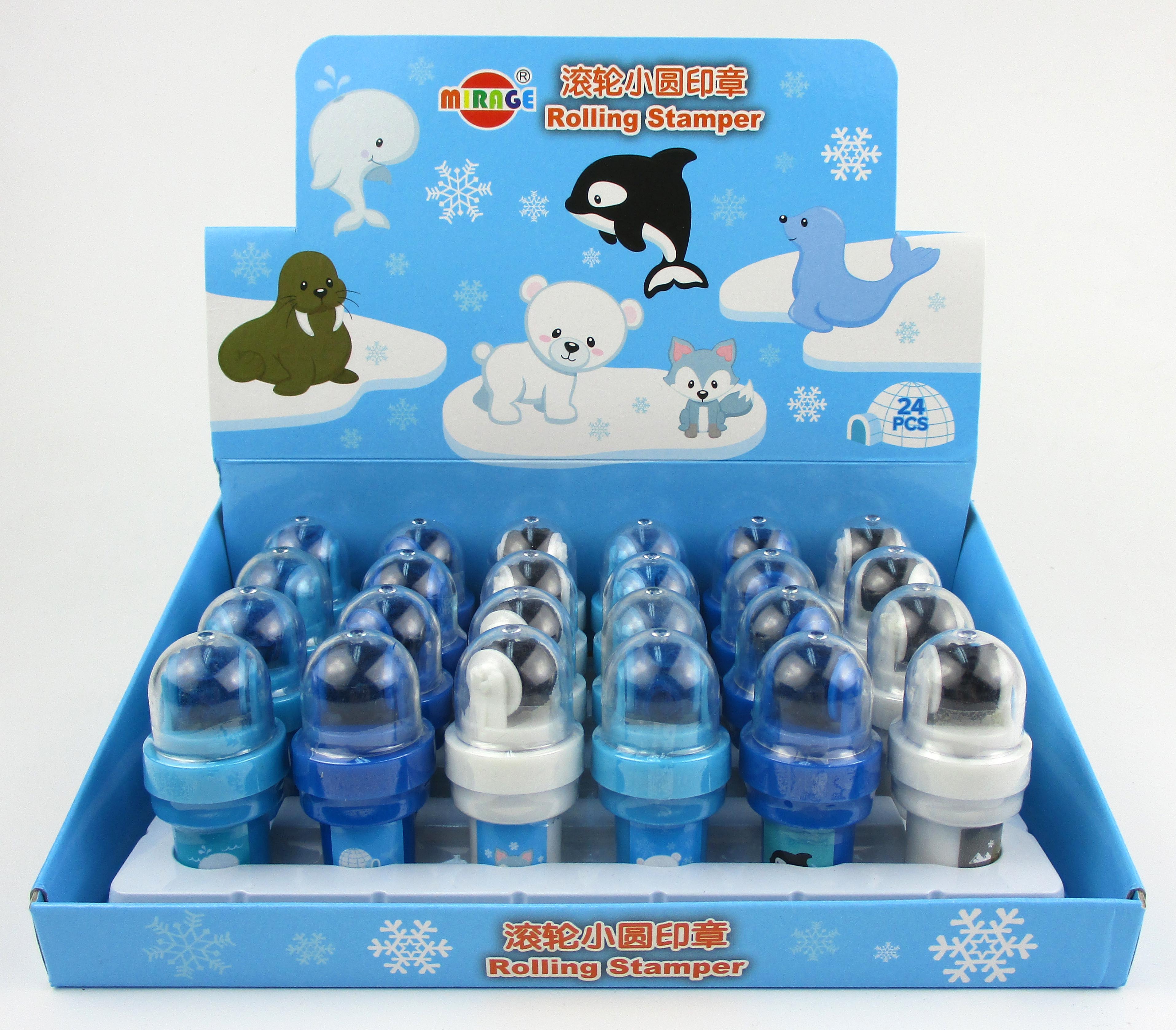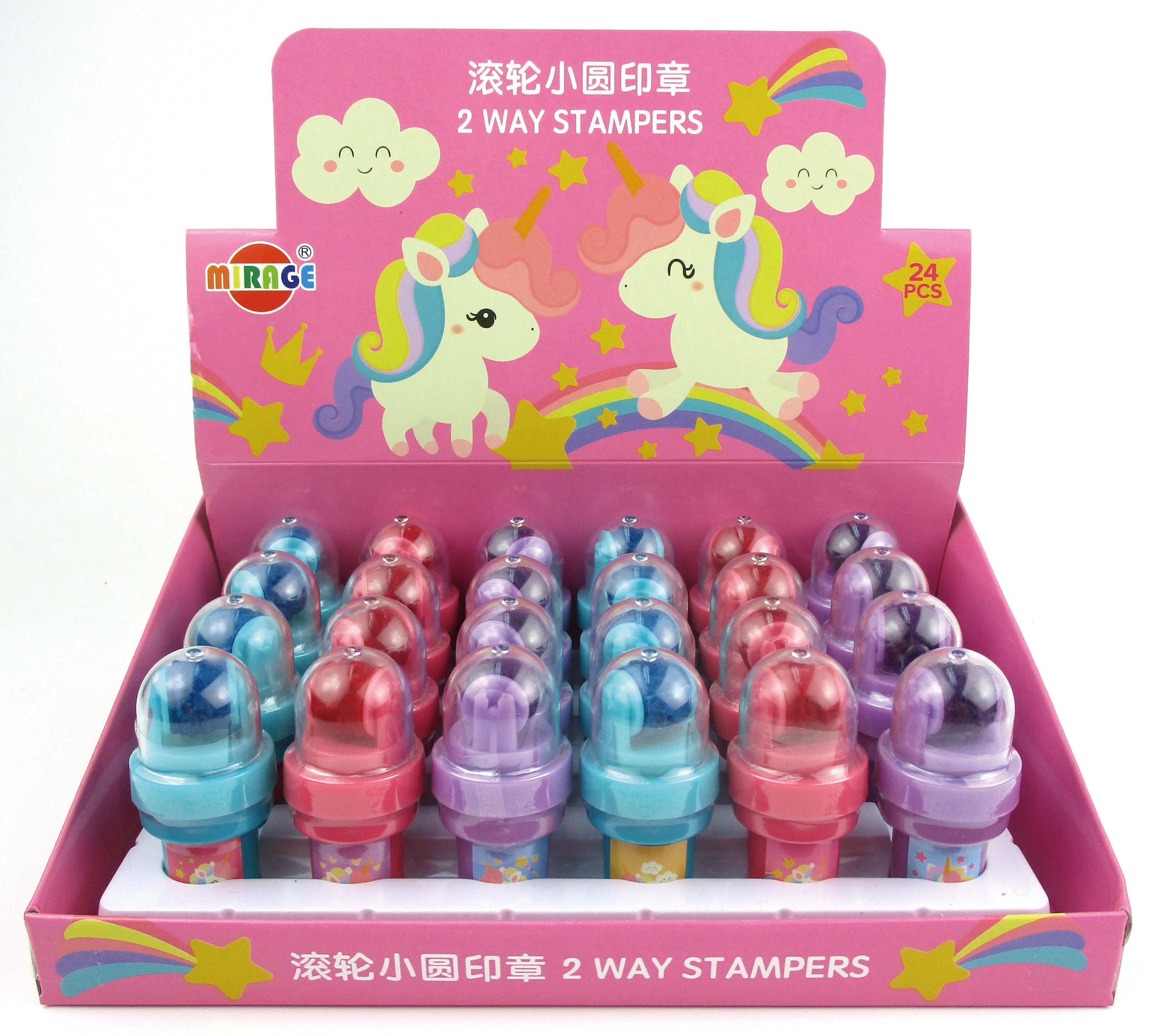 • These cute little self-inking stamps have BOTH a flat stamp and a roller stamp.