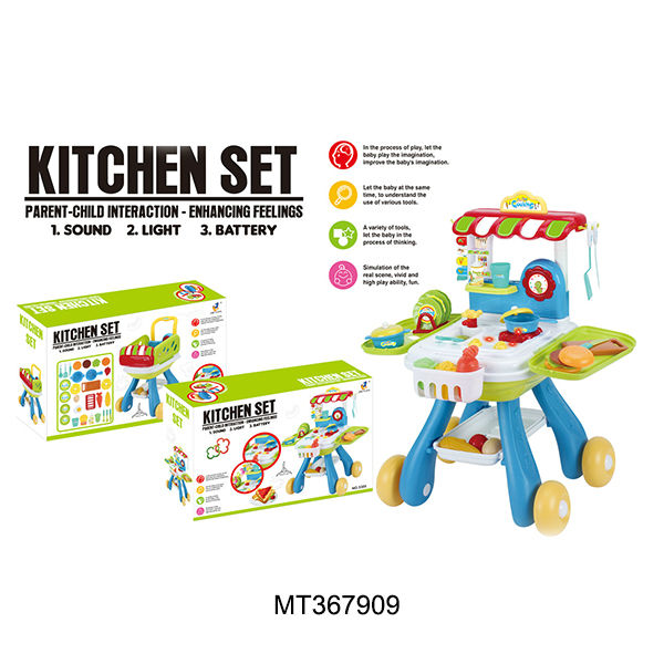 • Description: 2 in 1 shopping cart kitchen desk (with light music)
