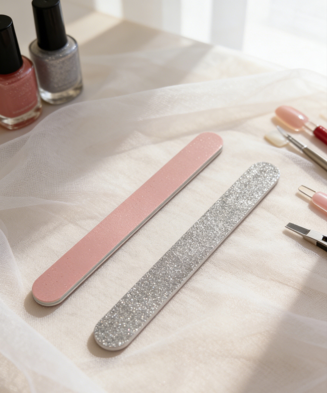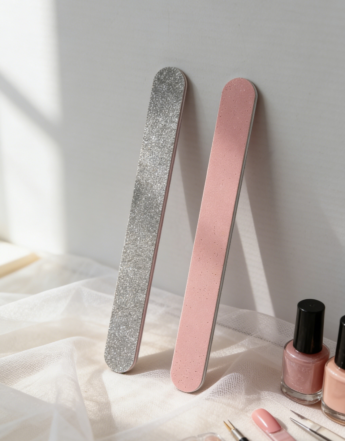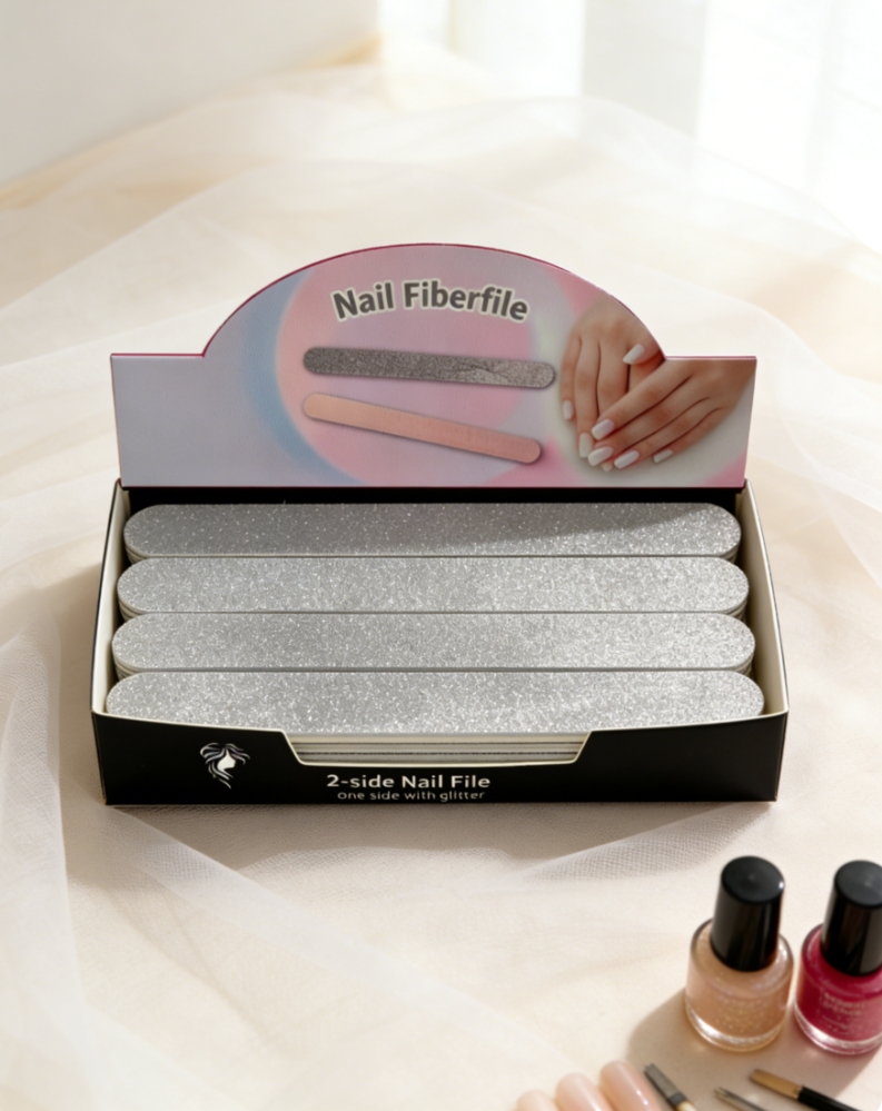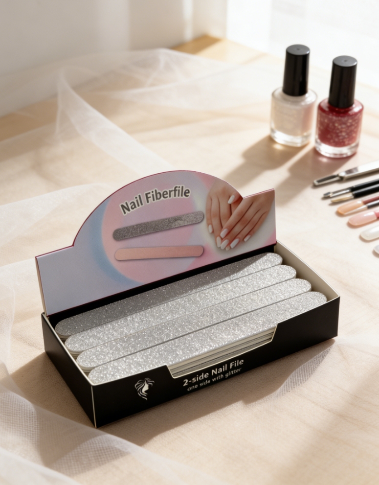 Description:2-side functional nail file ,one side with siliver glitter
