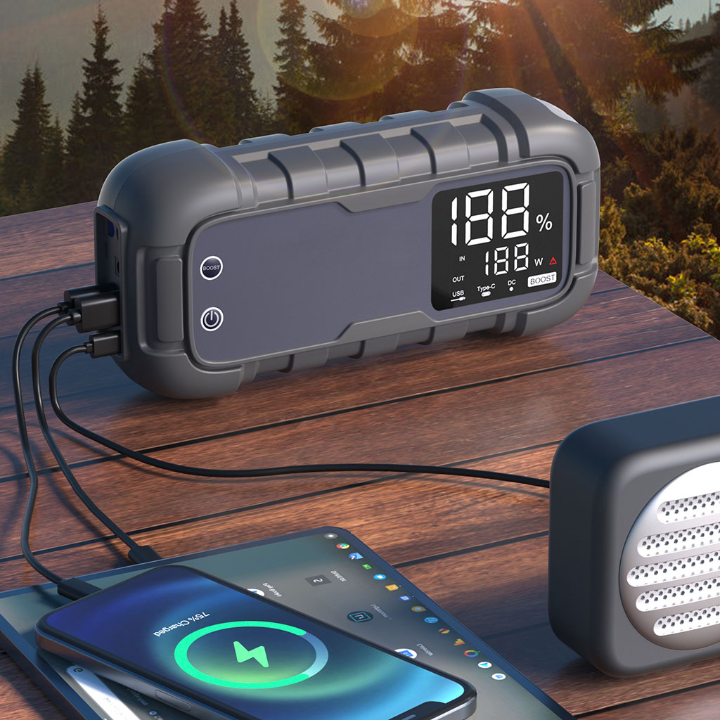 20,000 mAh PD65W Large Capacity Car Jump Starter with LCD Screen includes the following features :