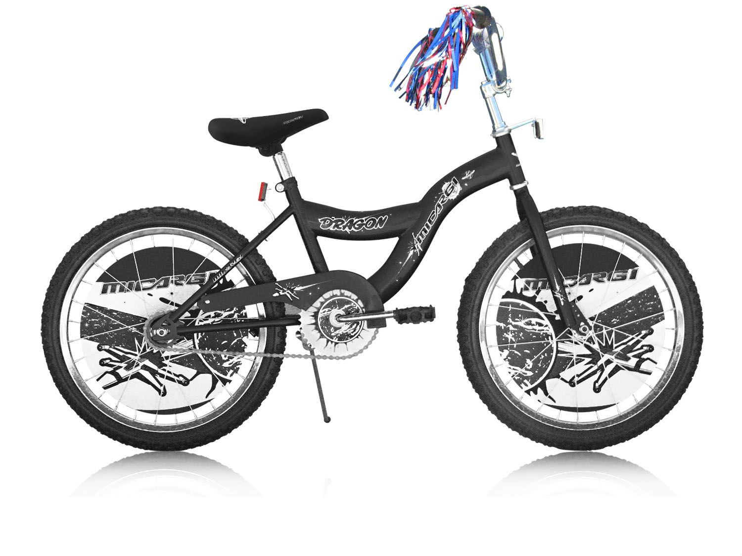 • coaster brake, one piece crank, steel rims, black tire, w/streamer and kickstand