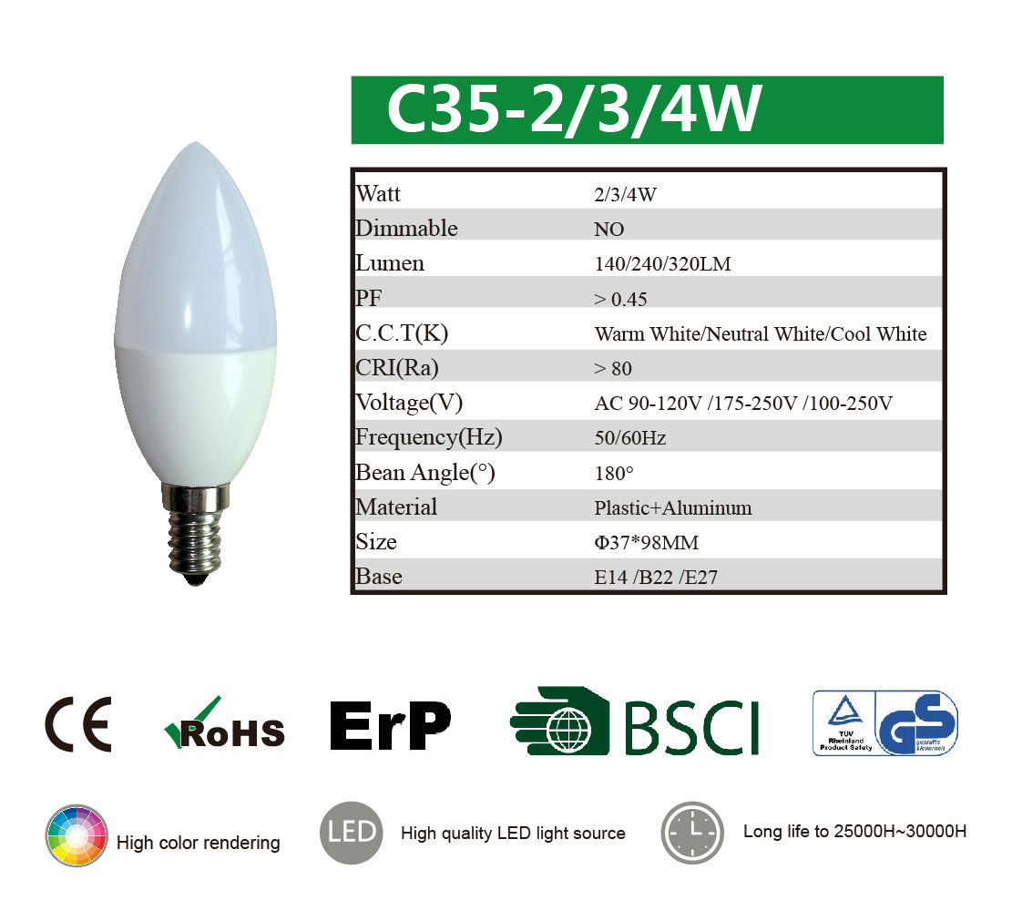 2015 Hot Seller Candle C35 On Wind LED Bulbs