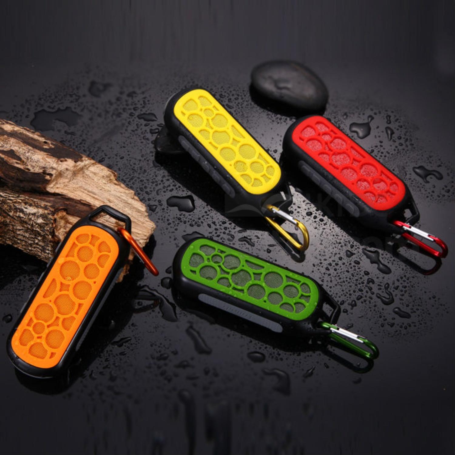 Have this portable speaker for streaming music just about anywhere. Showcased here is an oblong Bluetooth speaker with a built-in loop for attaching karabiner. Don’t worry if you spill water on it, as it is attentively designed with IPX4 waterproof housing.