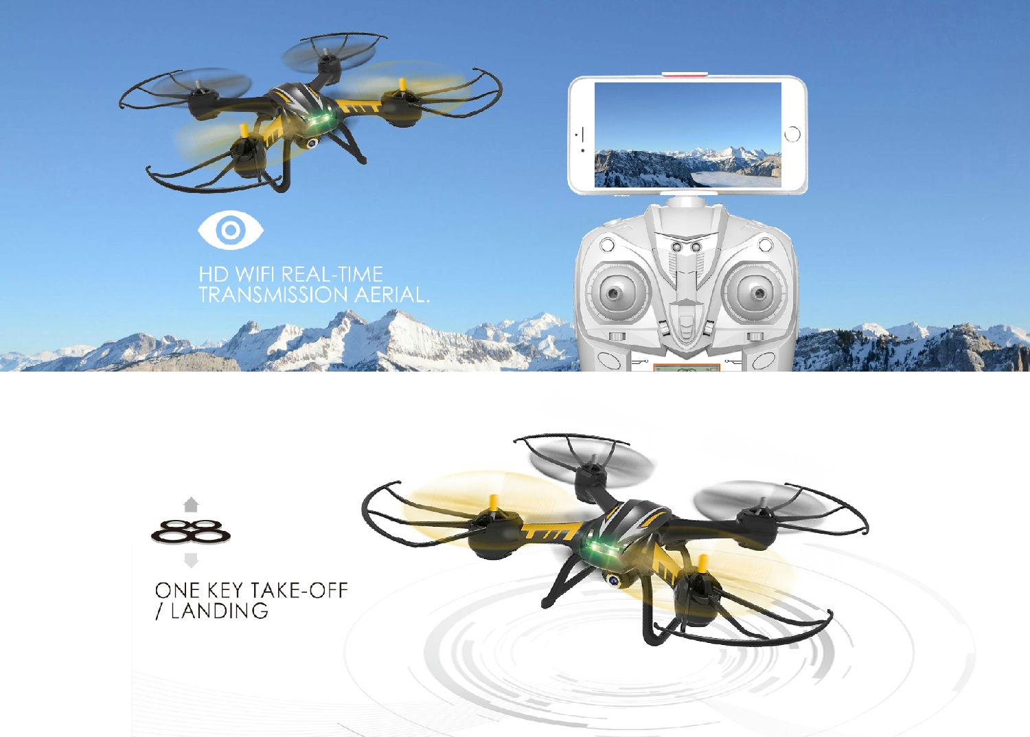 * 0.3mp HD camera Wifi camera * One key high set which can precisely hold the height. * Headless Mode no need to adjust the position of aircraft before flying. * One key to return makes it easily to find the way home. * One key take off make you ealily control * 360 degrees roll Professional cool and exquisite flight action. * LED light Suitable for flying in the dark at night. * Support the VR glasses to make you have a wonderful View