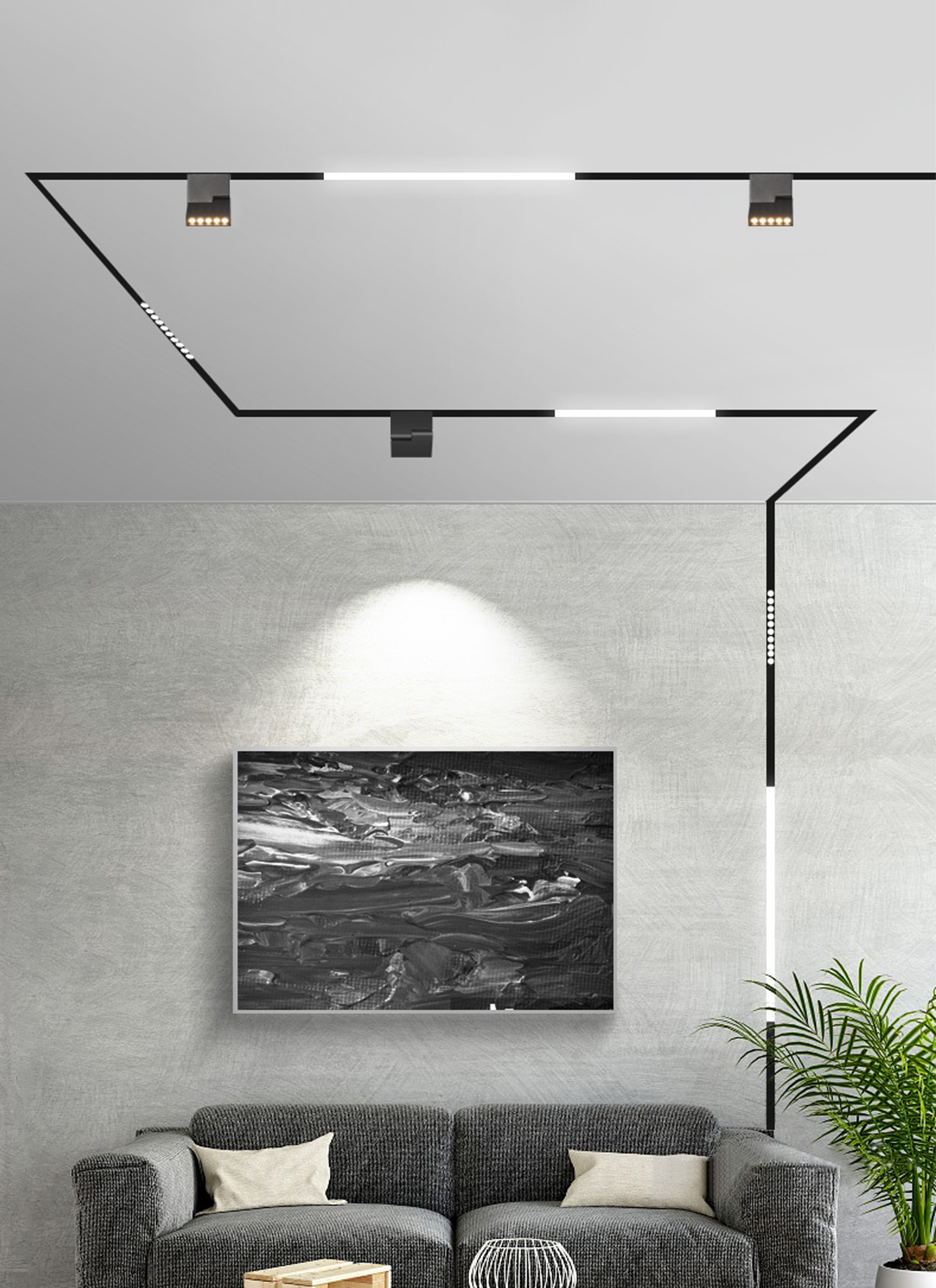 Magnetic lamp is a track-type quick-swap light that uses a magnet to quickly absorb characteristics.The utility model is composed of two parts magnetic track and the lamp. The track has three installation modes: surface mounted, recessed and suspended; the lamp consists of various modular lamp such as flood linear lamp, anti-glare accent linear spotlight, anti-glare high-power spotlight, hanging lamp, wall washer and decorative lamp. The modular lamp can be used alone or in combination. they have good anti-glare effect, and can be combined with spot, line and panel to meet the needs of various lighting requirements. This kind linear magnet lamp is fashionable, wireless lamp .It is a modern lamp to meet architectural design concept . It is an ideal choice for offices, showrooms, specialty stores, hotels, villas, clubs and other places.