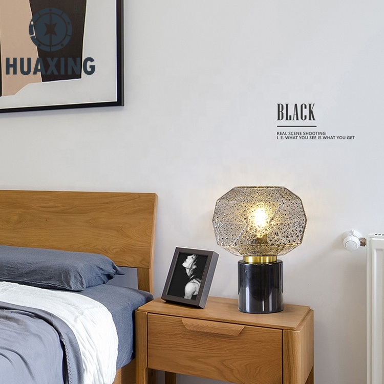 2020 New designer E27 black white restaurant hotel home bedroom decorative handmade glass marble luxury nordic led table lamp