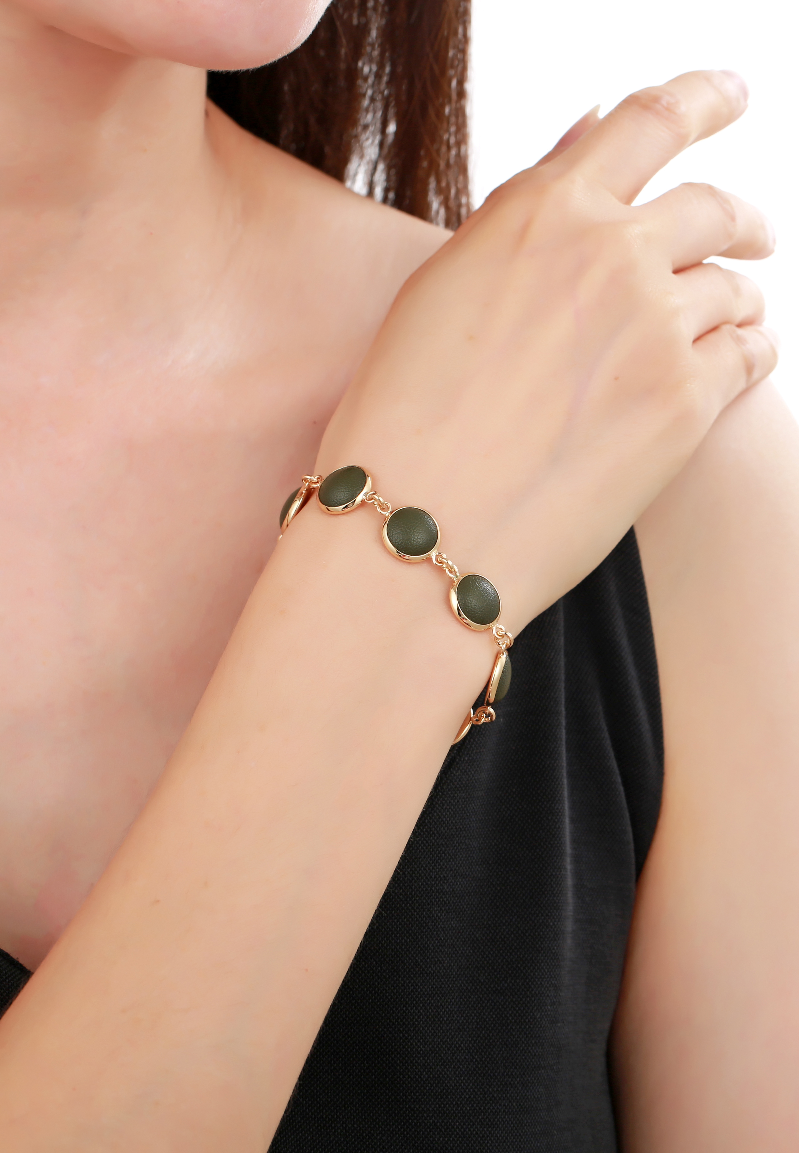2021 China Manufactured Women Beaded Bracelet Jewelry Green Real Cowhide Metal Bracelets