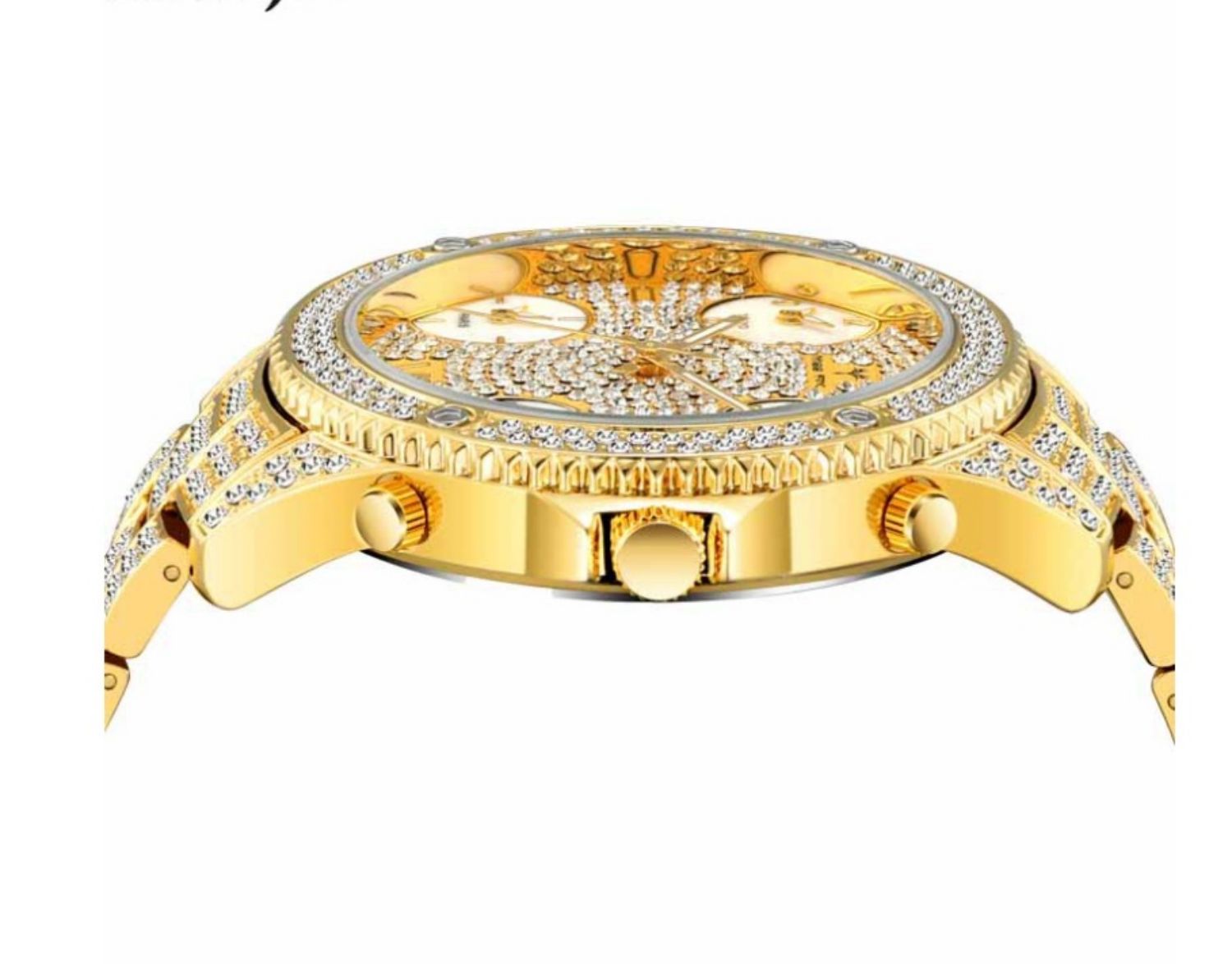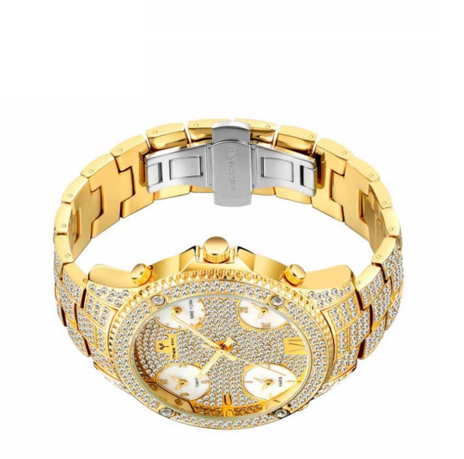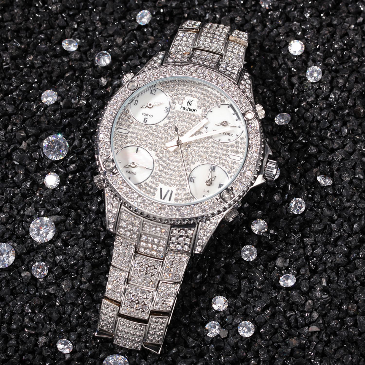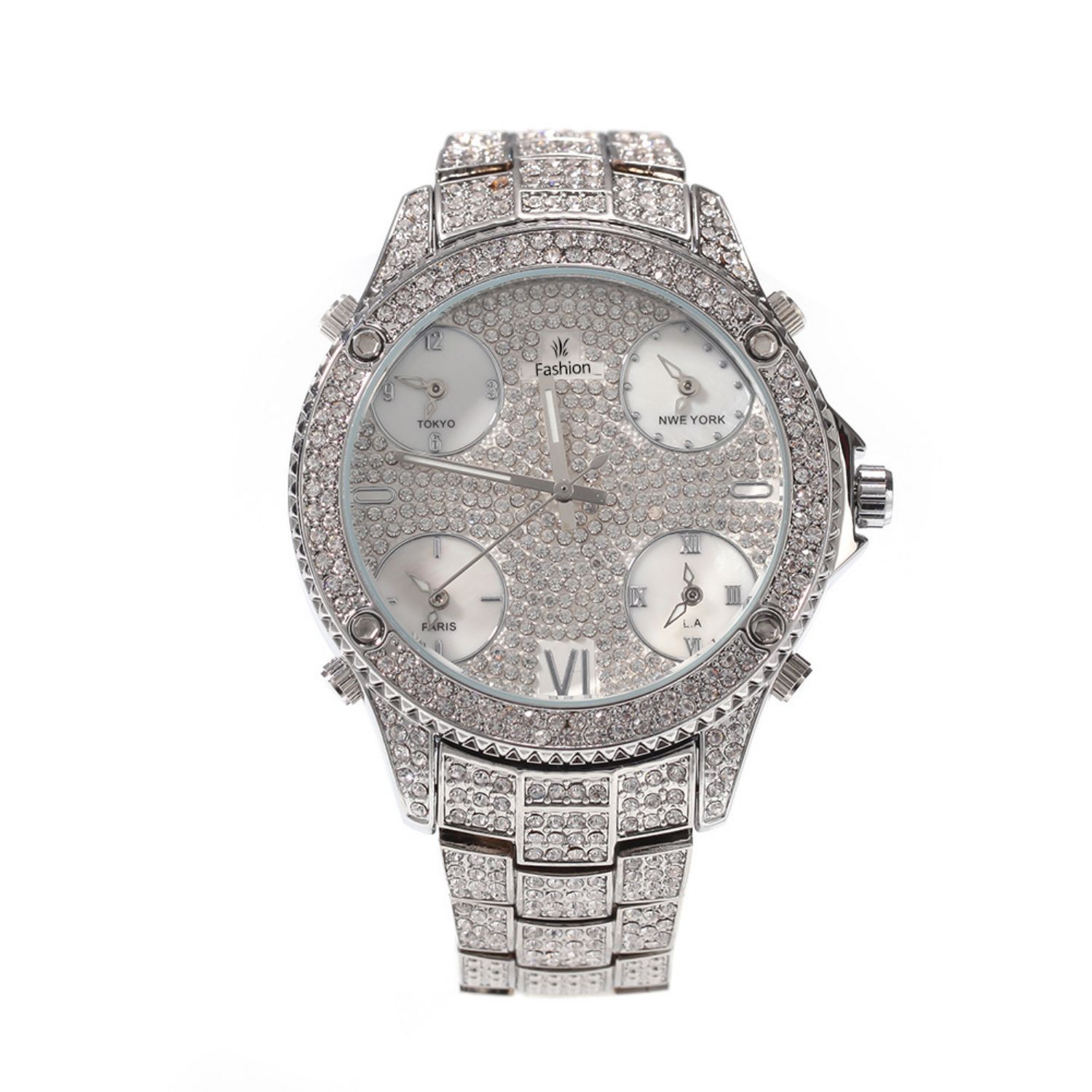 2021 New Hip Hop Full Rhinestone Cool Casual Sports Calendar Personality Fashion Quartz Watch With Four Time Zones