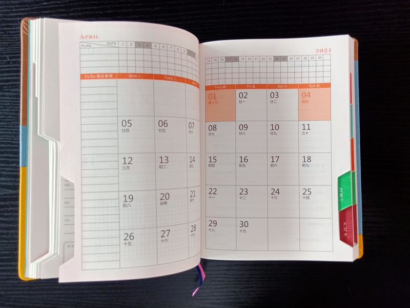 Inner: 192 sheets 80g paper, 2c diary printing, with die0-cut pages.