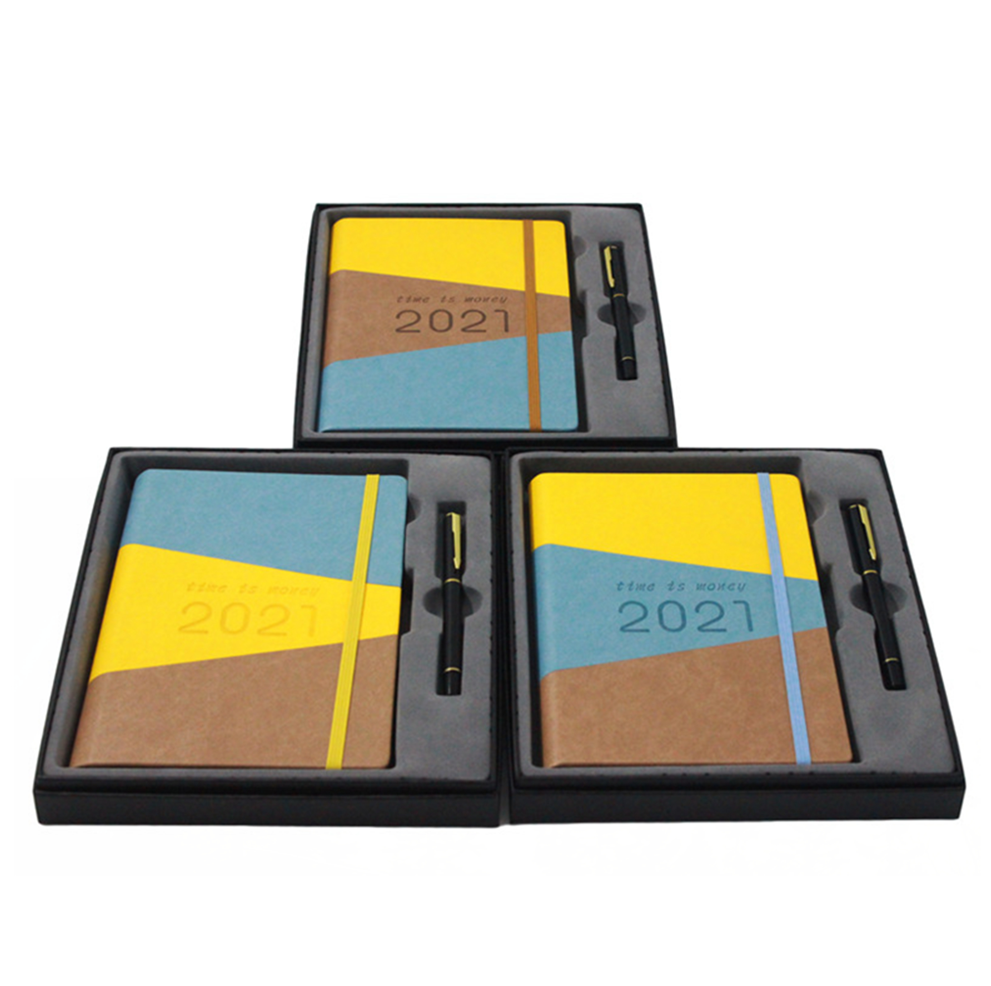 Cover: Thermo PU coated with 950g cardboard, 3 colors PU connected, logo debossed.