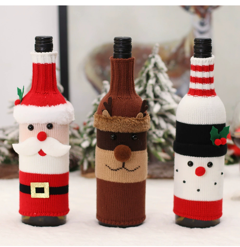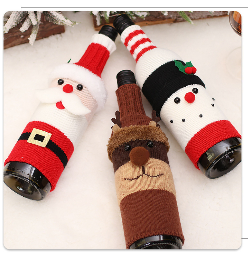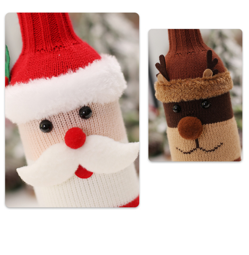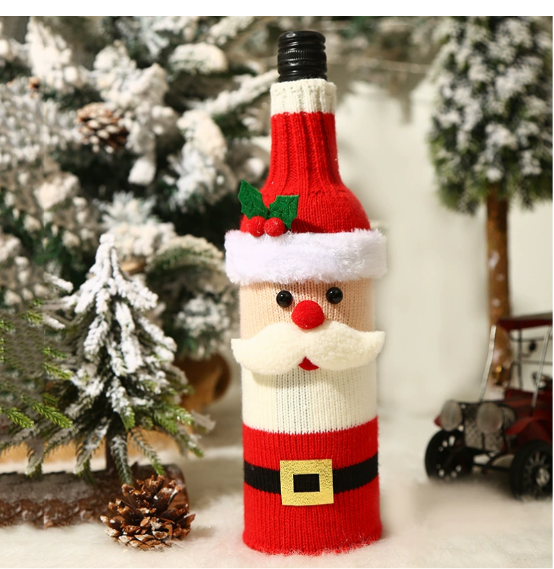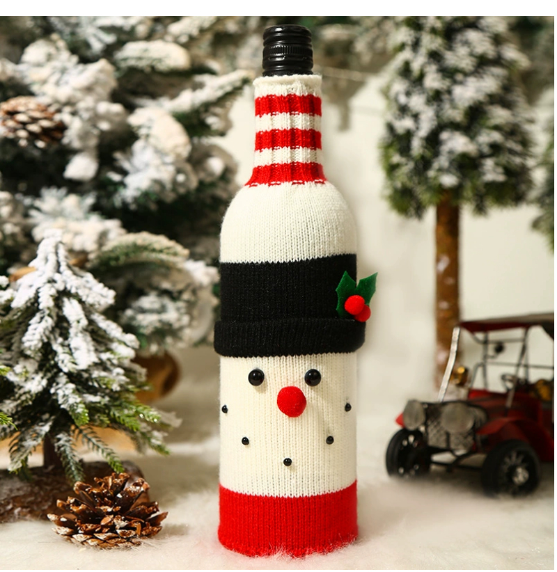 2022 Christmas red wine bottle set Christmas decoration cartoon knitted old man snowman wine set holiday restaurant decoration wine bottle decoration