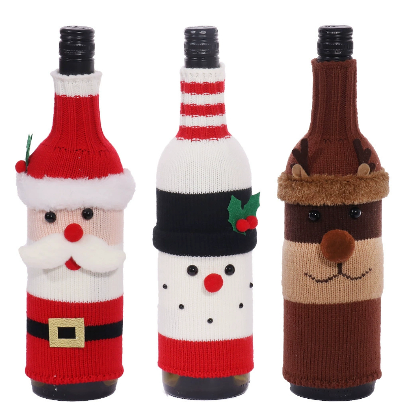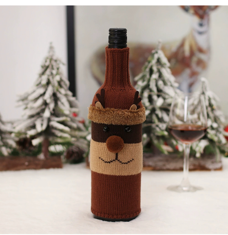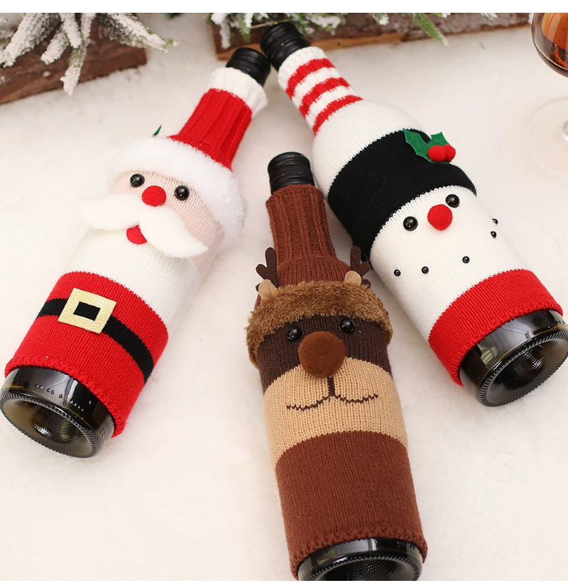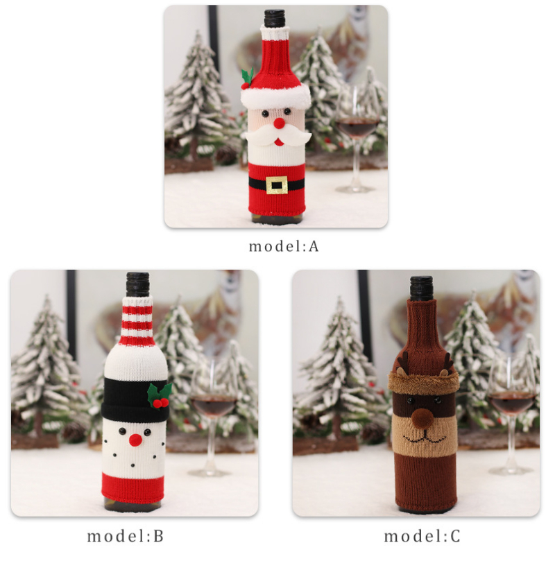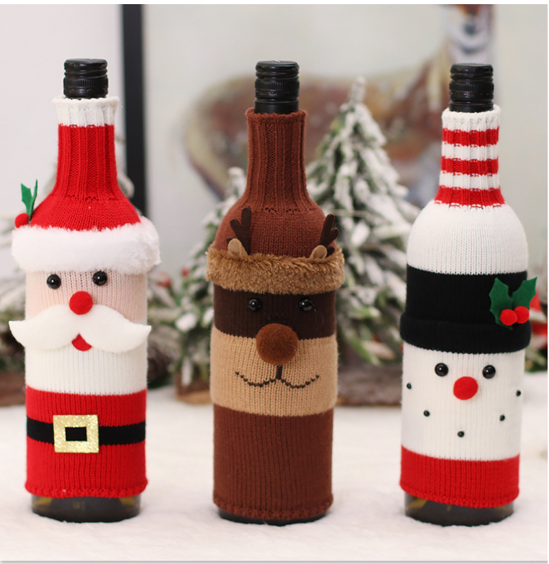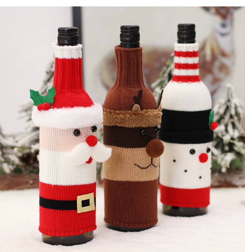 2022 Christmas red wine bottle set Christmas decoration cartoon knitted old man snowman wine set holiday restaurant decoration wine bottle decoration