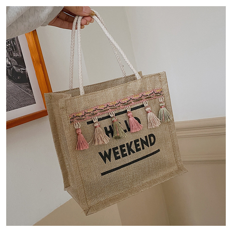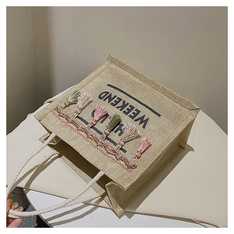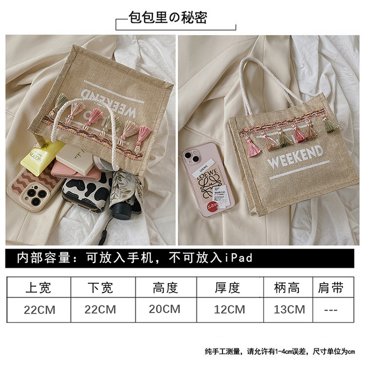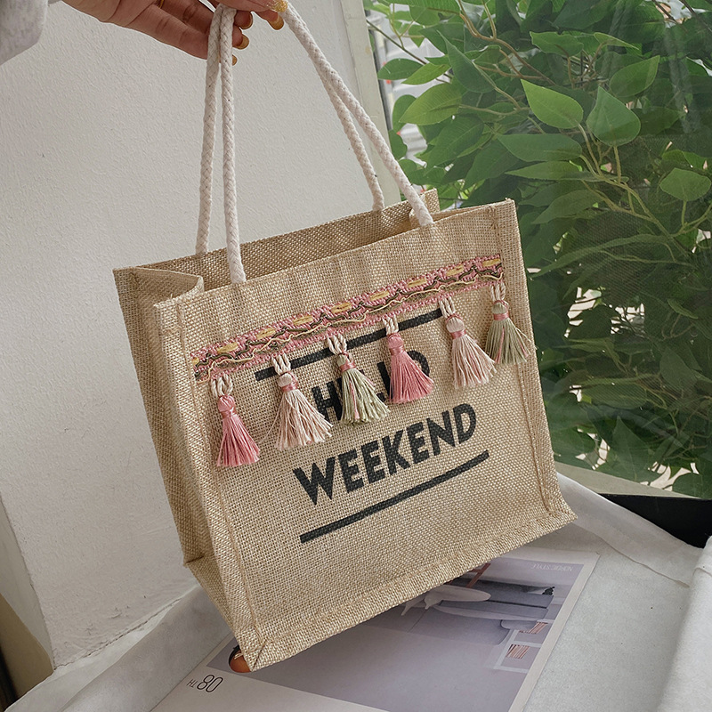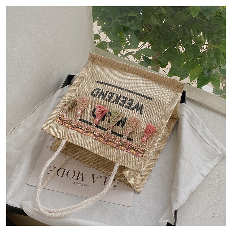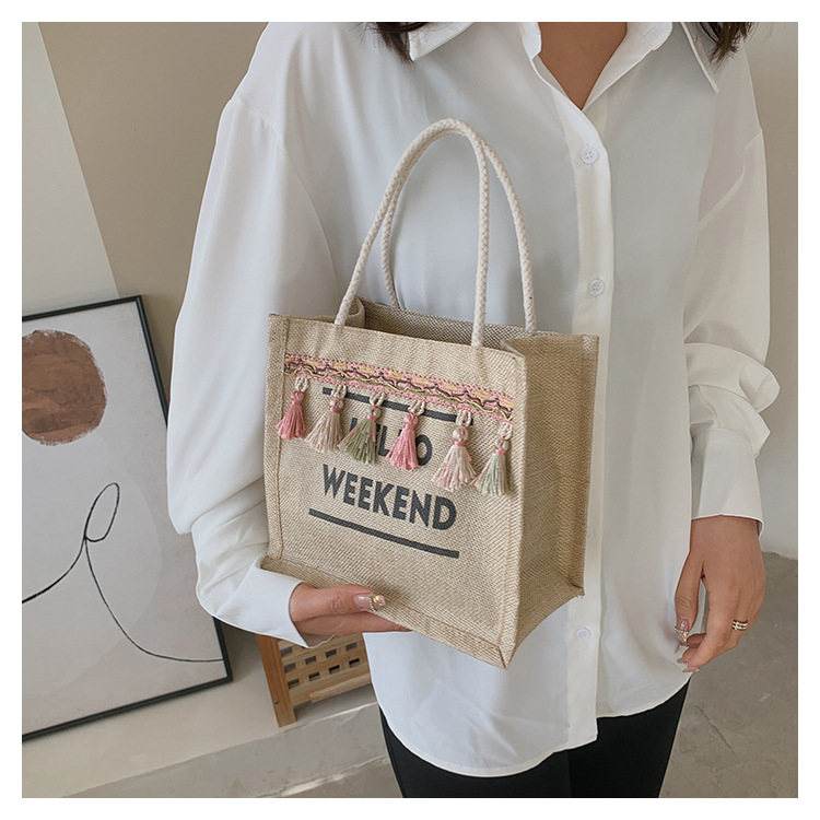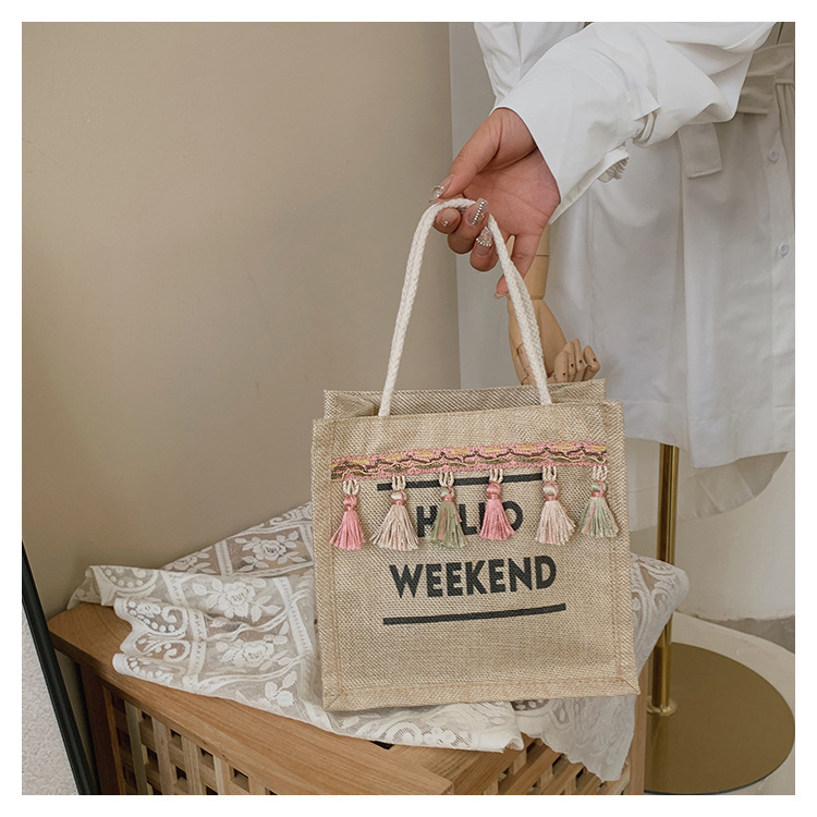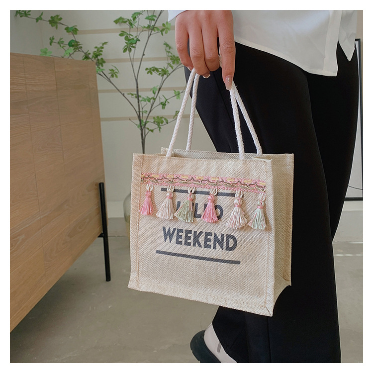 2022 Women Tassels Cotton And Linen Carry Handbag Shoulder Bag Lunch Bag For Girls Ladies Personal