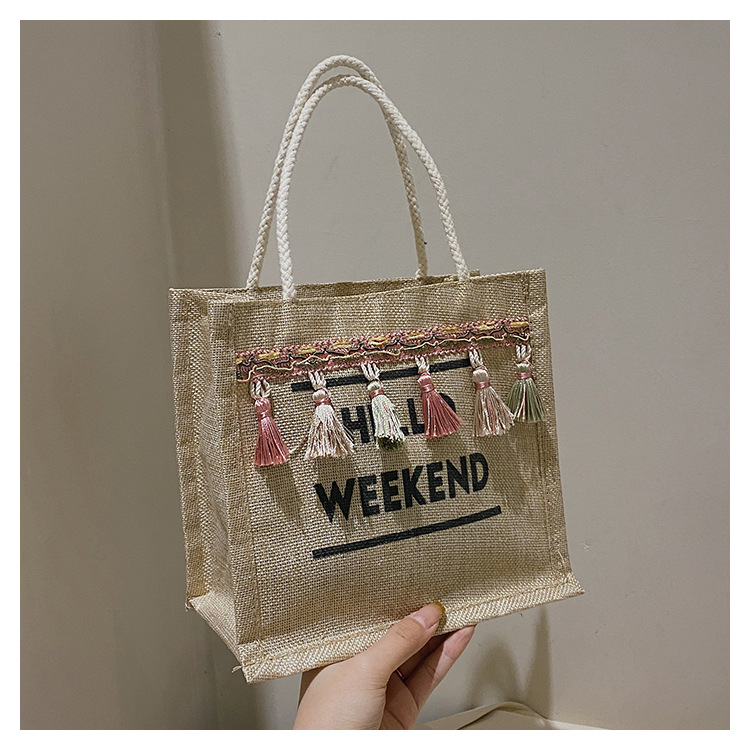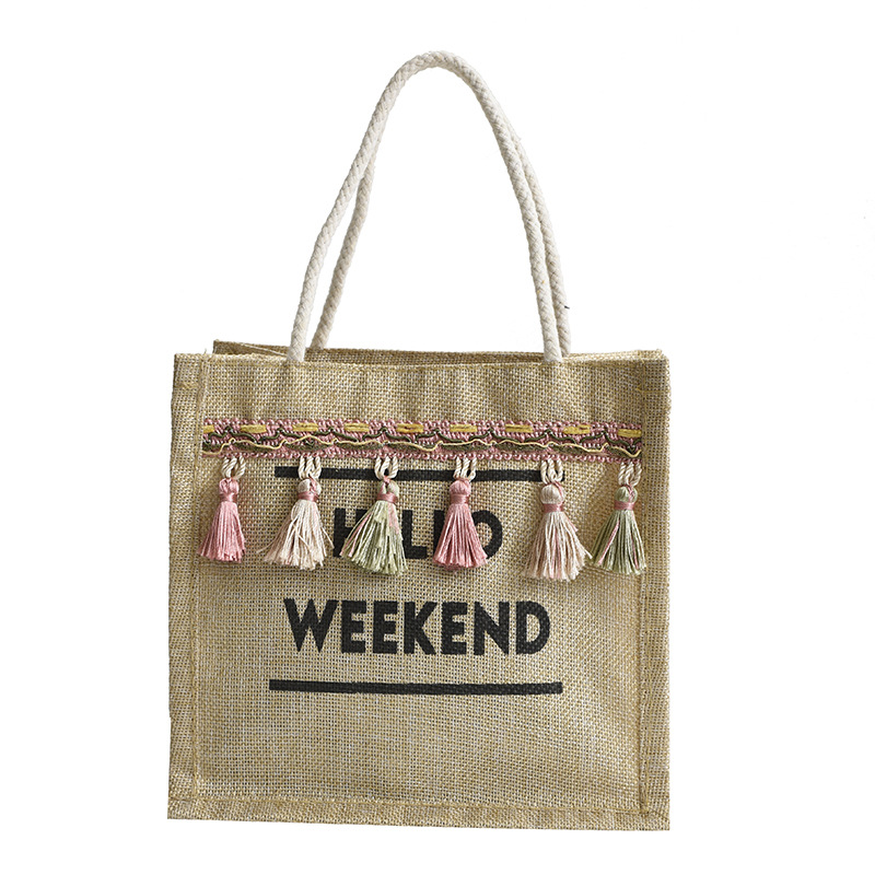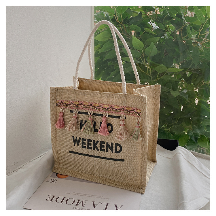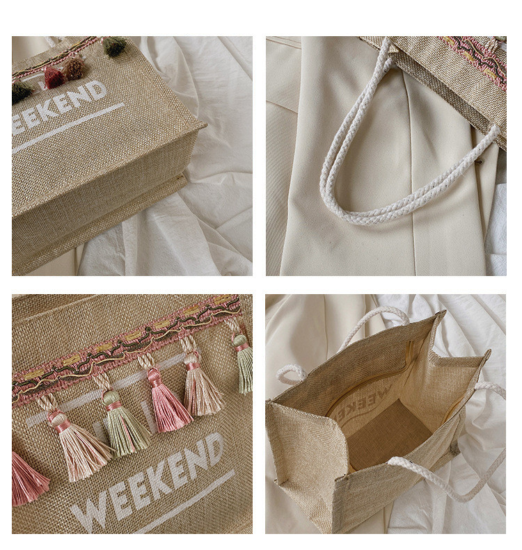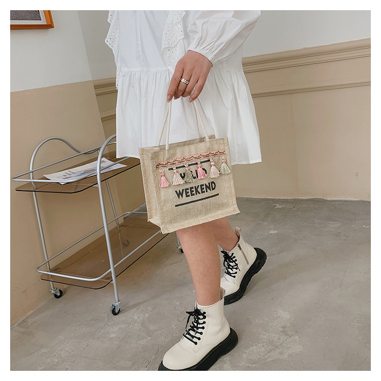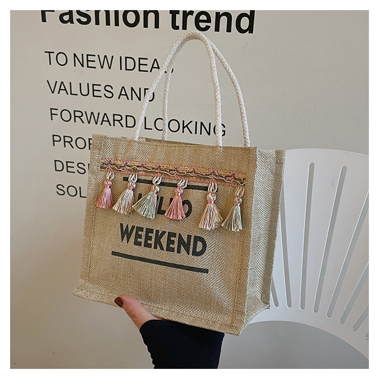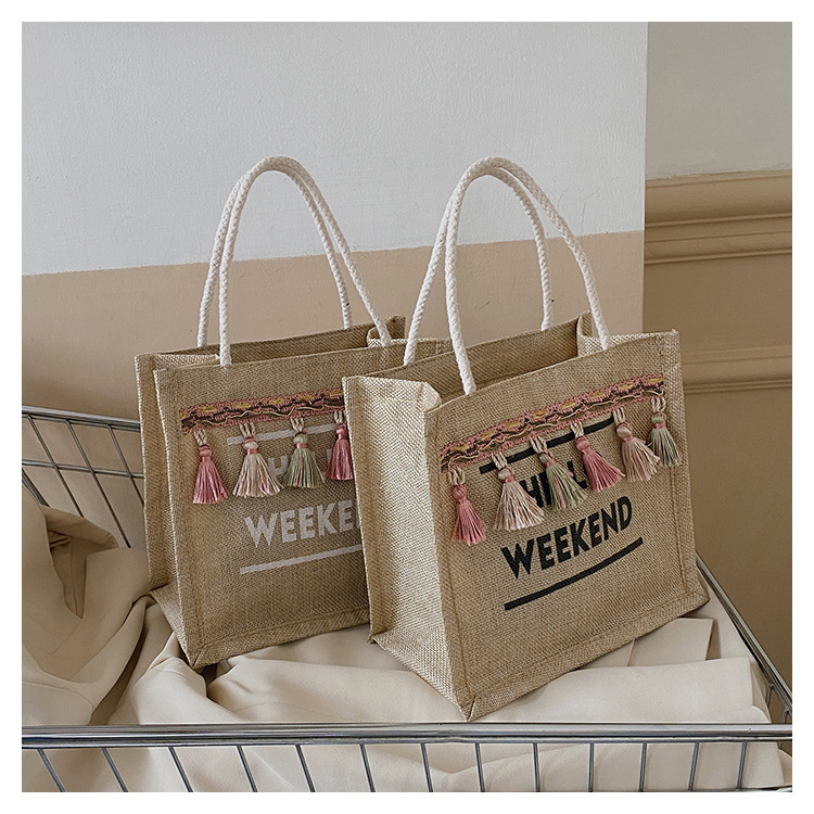 2022 Women Tassels Cotton And Linen Carry Handbag Shoulder Bag Lunch Bag For Girls Ladies Personal