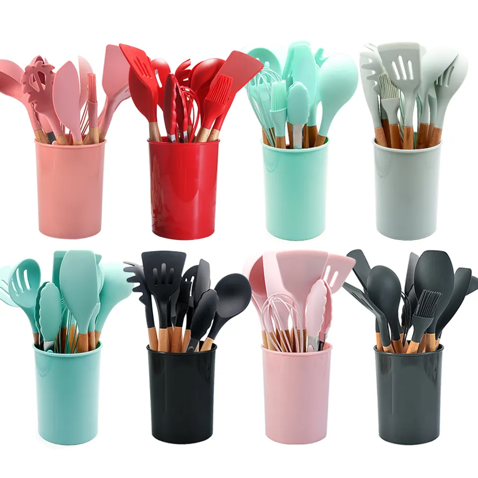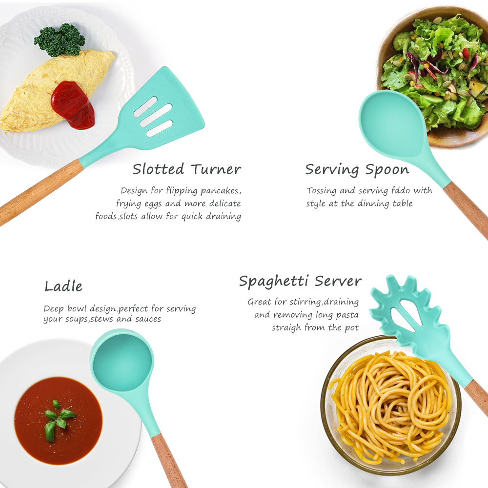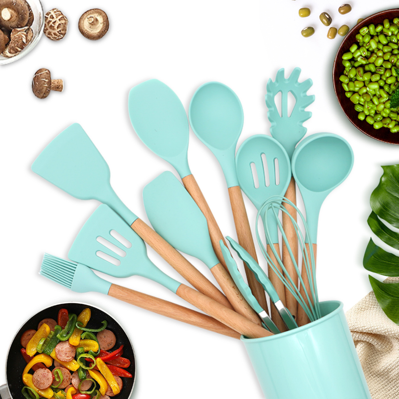| Product Name | PRIVATE LABEL WHOLESALE WOOD SILICONE KITCHEN ACCESSORIES COOK UTENSILS SET |