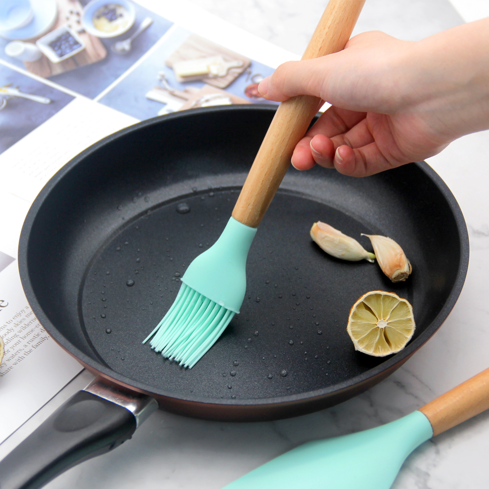 | Material | Food grade silicone + beech wood handle+stainless steel and plastic |