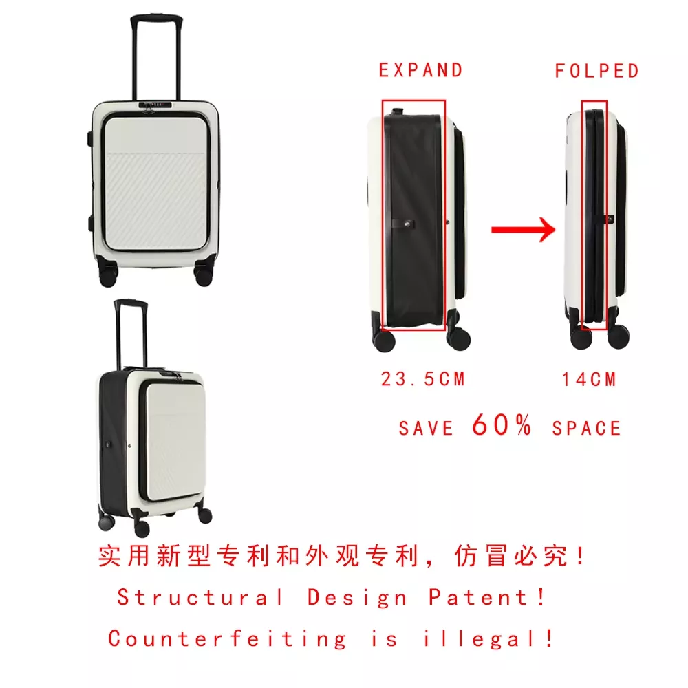 2024 New Simple Design Front Open Trolley Case Collapsible Travel Suitcase Folding Luggage Laptop Compartment Durable PC