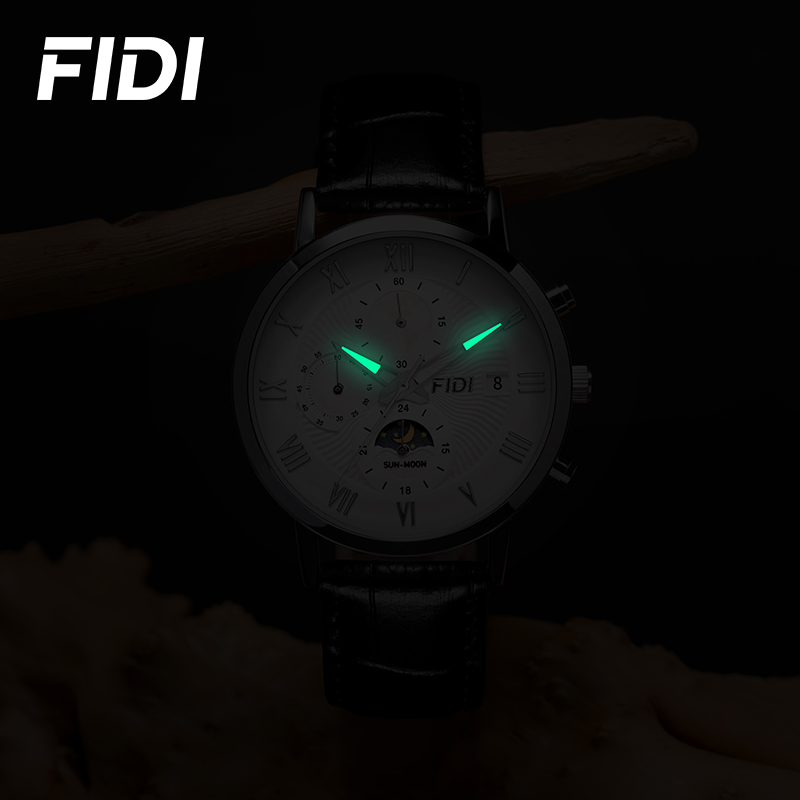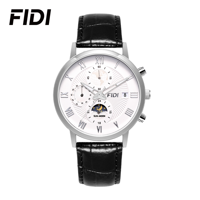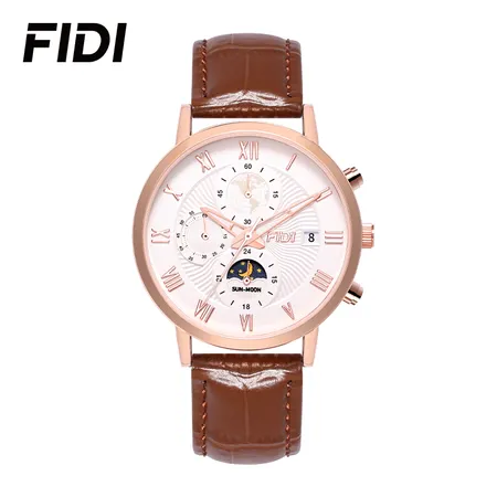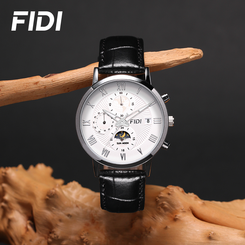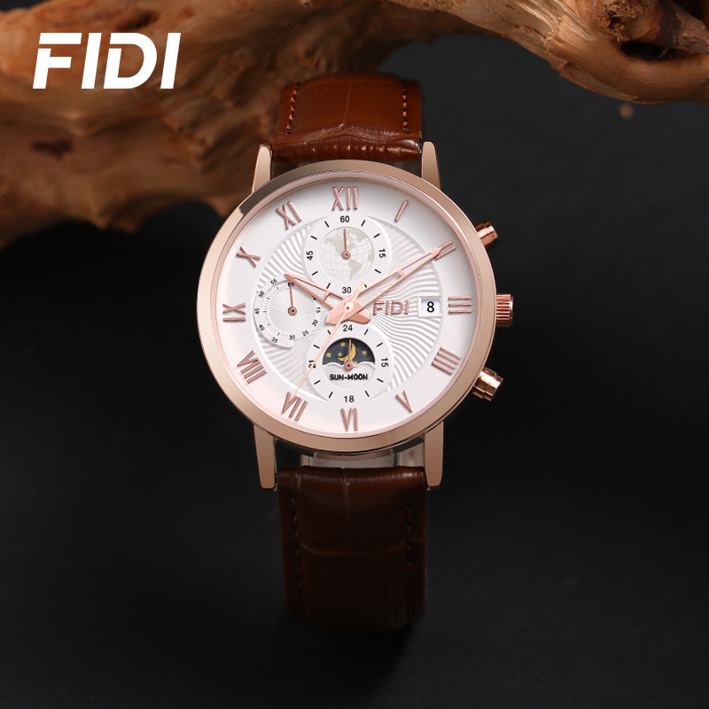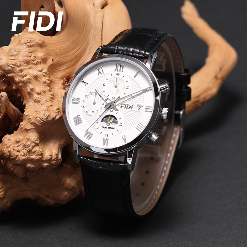 2025 FIDI Wholesale Fashion Quartz Auto Date Luminous Hands Leather Waterproof Quartz Male Watch