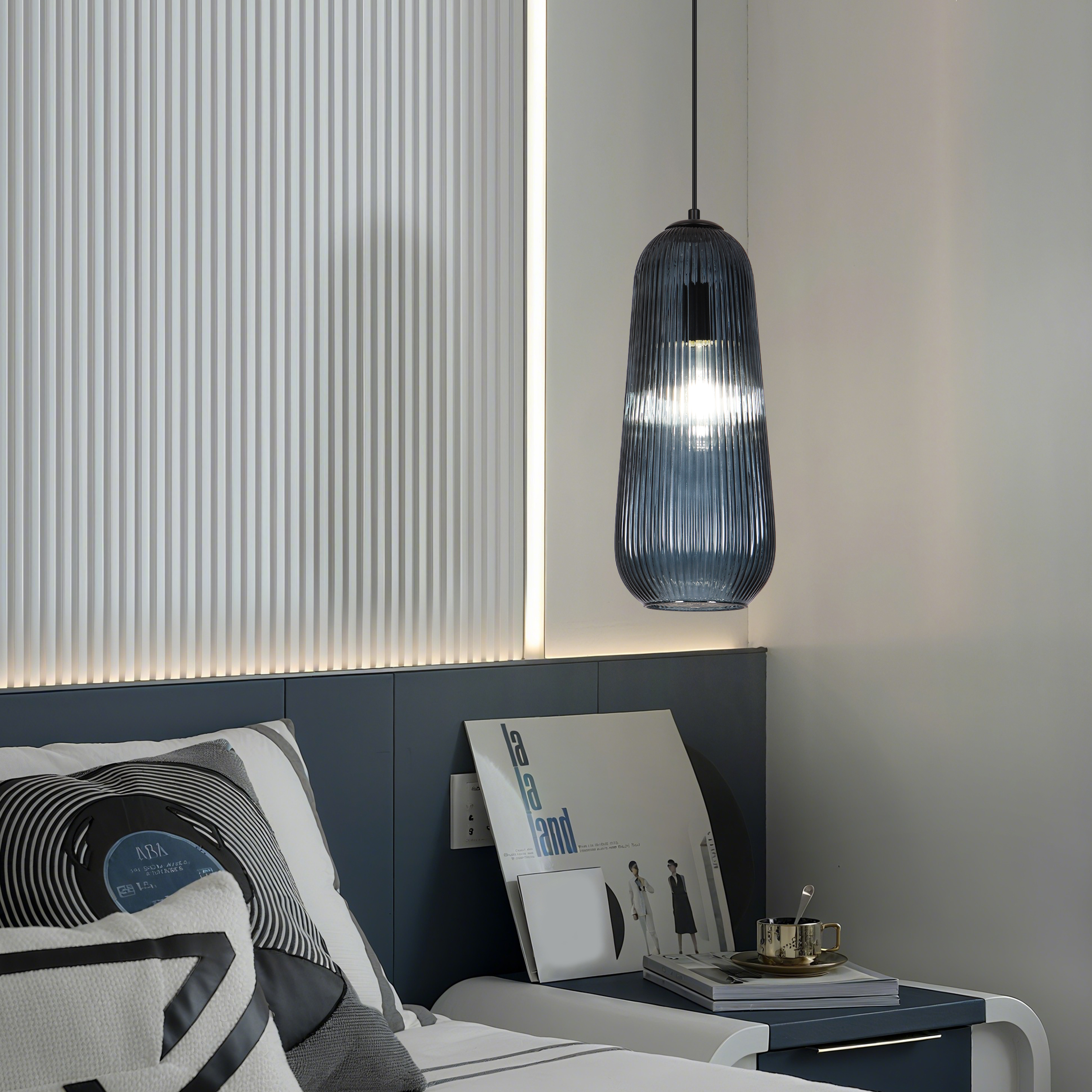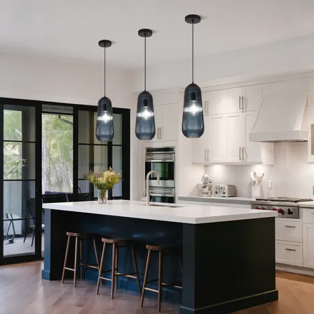 Elevate your kitchen's style with these modern pendant lights. Their sleek, ribbed blue glass shades blend sophistication and contemporary charm. Hanging gracefully over the island, they cast a warm, inviting glow, perfect for meal prep or gatherings. Compatible with various decor styles, from minimalist to eclectic, they add a touch of elegance to any space. Crafted for durability and designed to impress, these lights are a must - have for anyone looking to upgrade their home globally. Transform your kitchen into a chic hub with this stunning lighting solution.