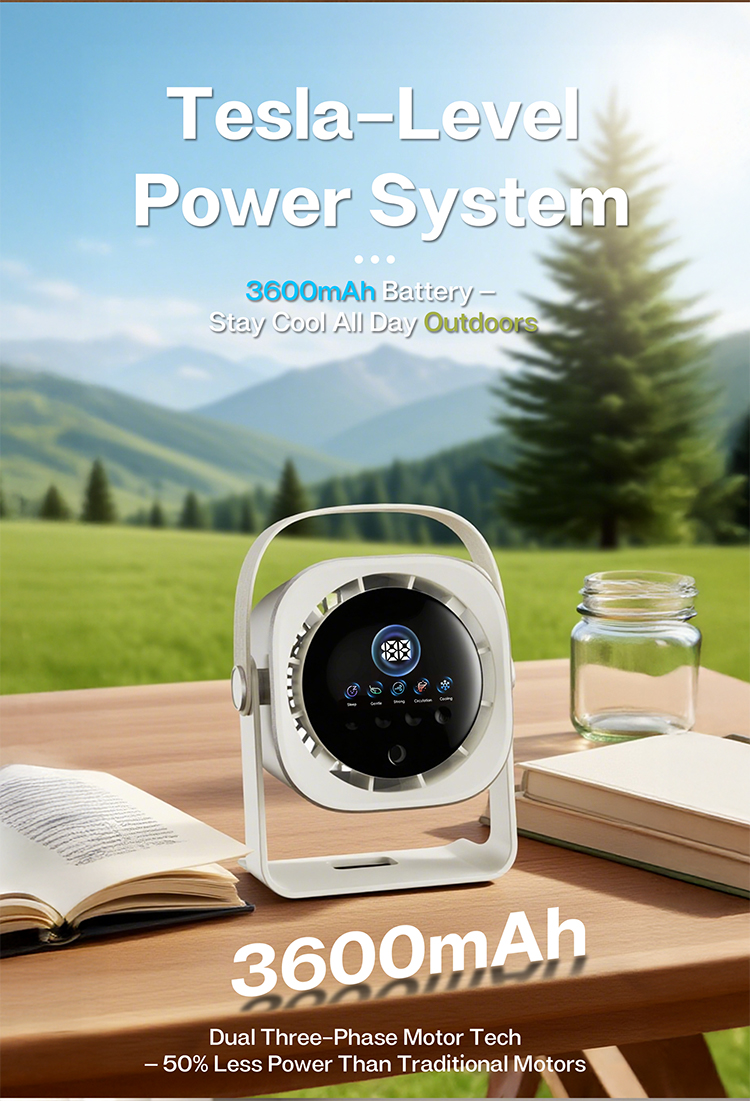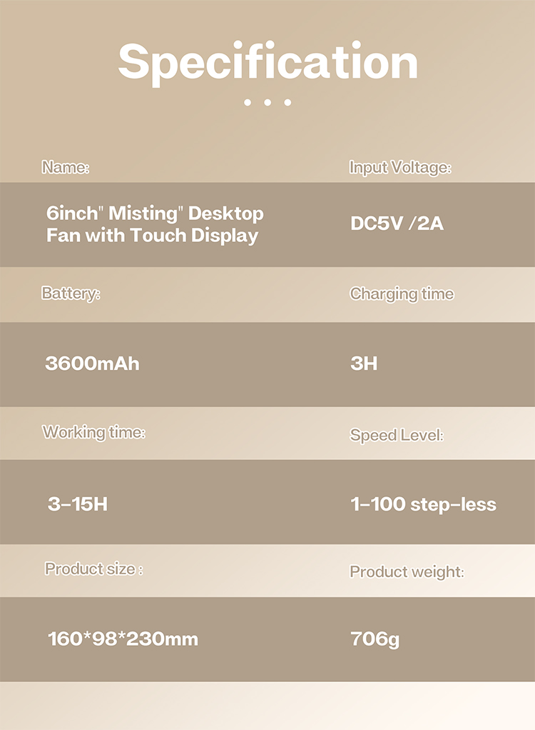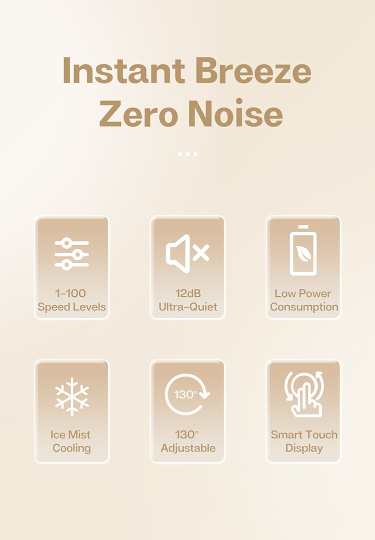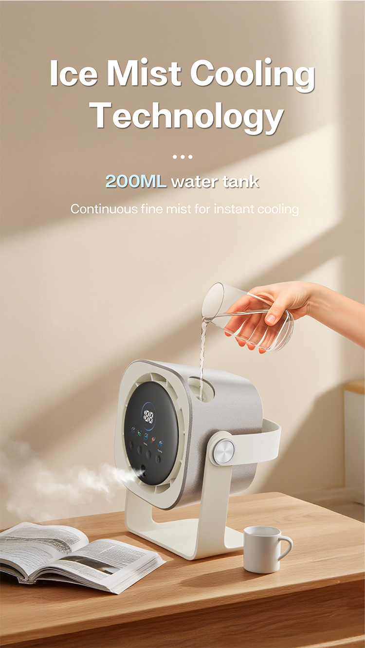 • 200ML water tank – Continuous fine mist for instant cooling (one-touch activation).