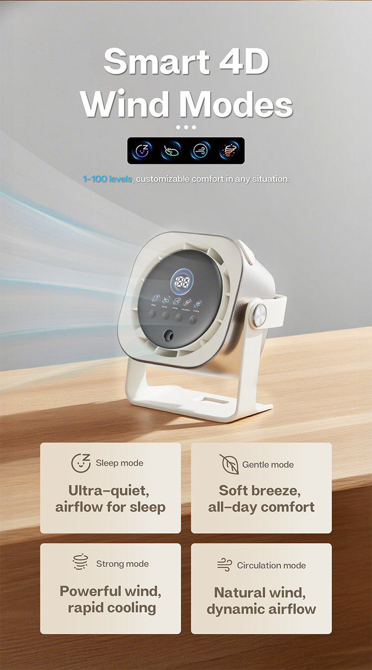 • Sleep / Gentle / Circulation / Turbo – One-touch switching for customized comfort in any scenario.