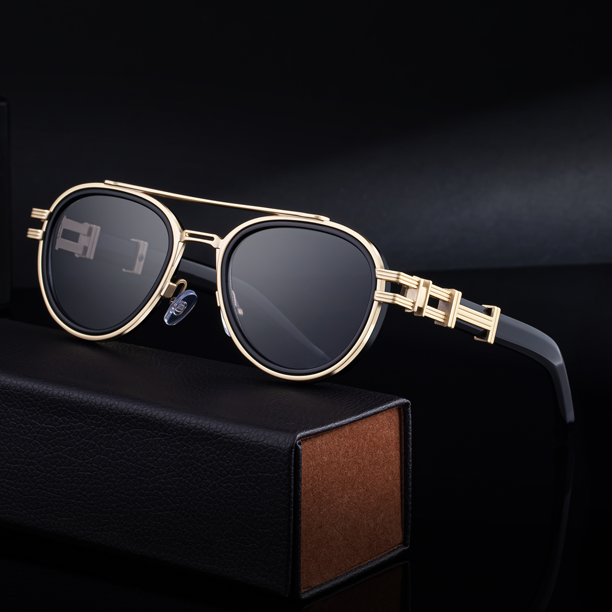 2025 new European and American fashion oval sunglasses men's retro double-beam metal frame sun protection sunglasses men's cross-border BLS-3640