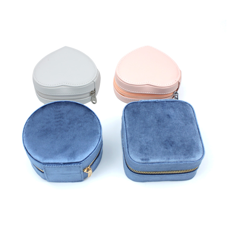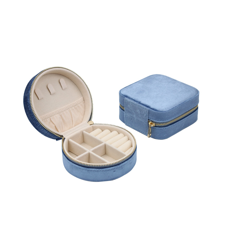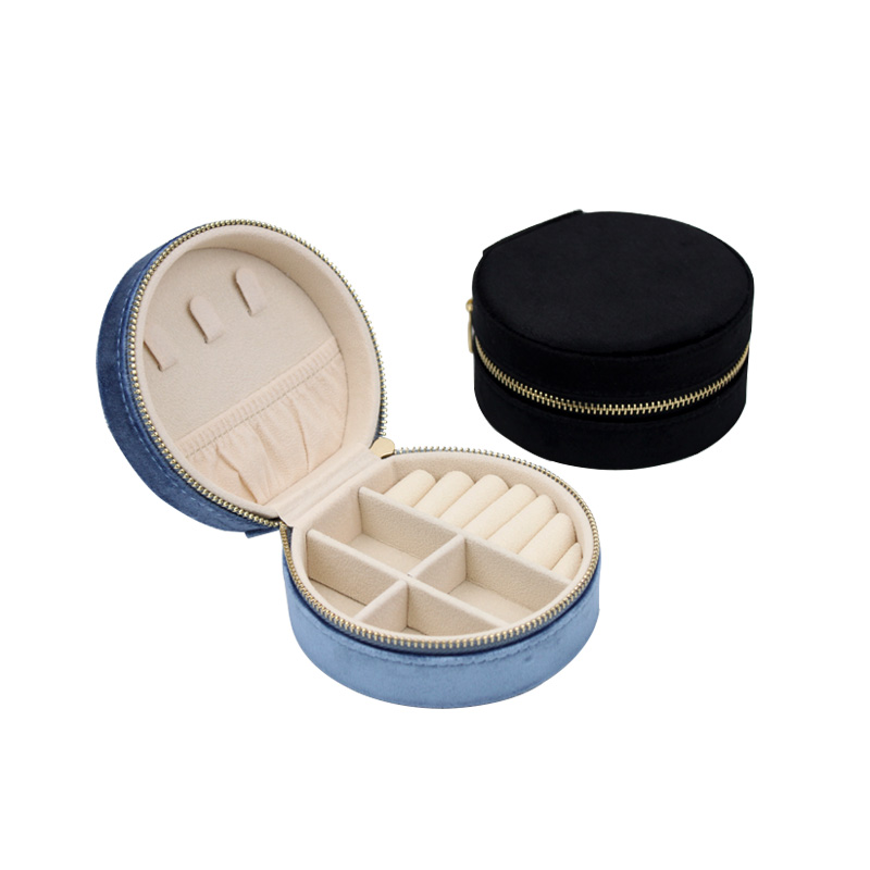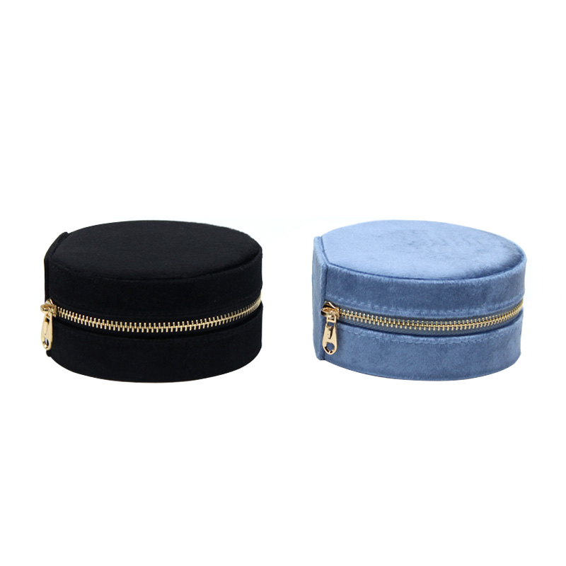 2025New Arrival Velvet Jewelry Round Box with Zipper Customize Logo for Ring Necklace Earring Jewelry Storage Box