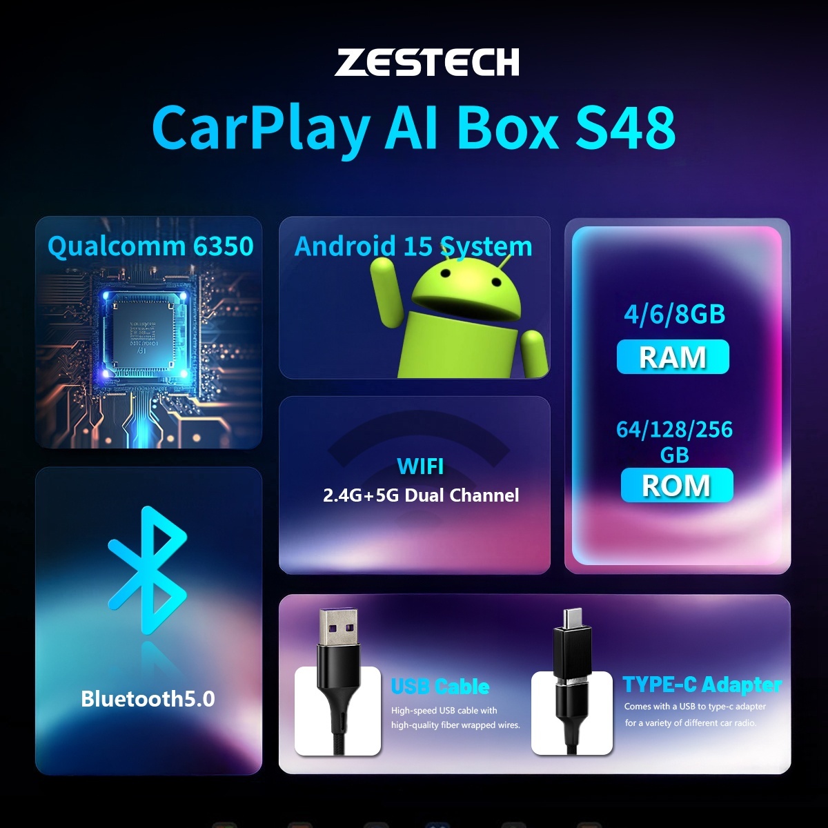 2026 Ai Box 12+256GB Qualcomm 6350 Android 15 Carplay Youtube Netflix Video Carplay Android Auto Wireless Adapter Ai Android Box
