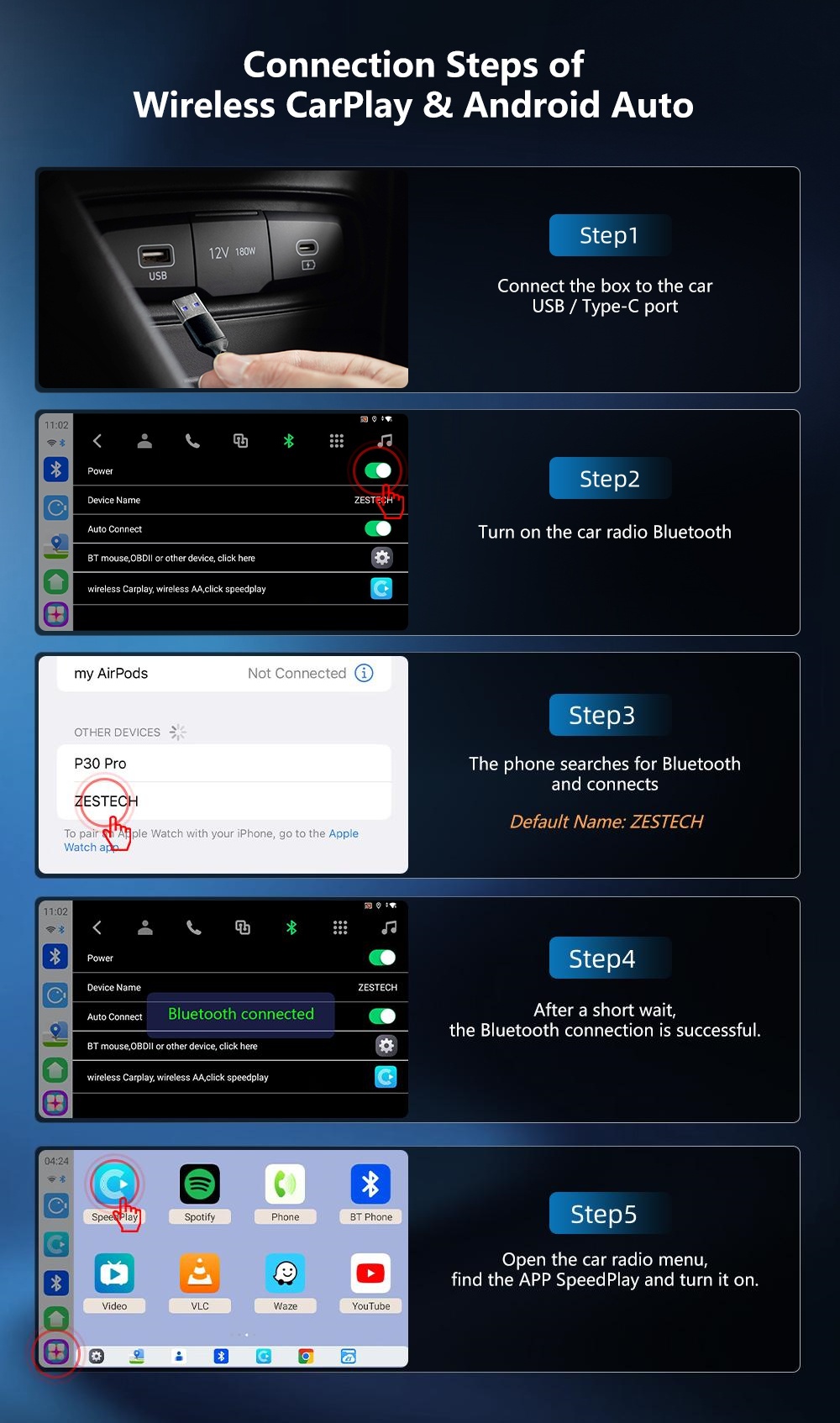Usb, Bluetooth, SD Card, TF Card, Built-in WiFi, 5G Sim