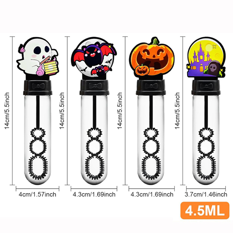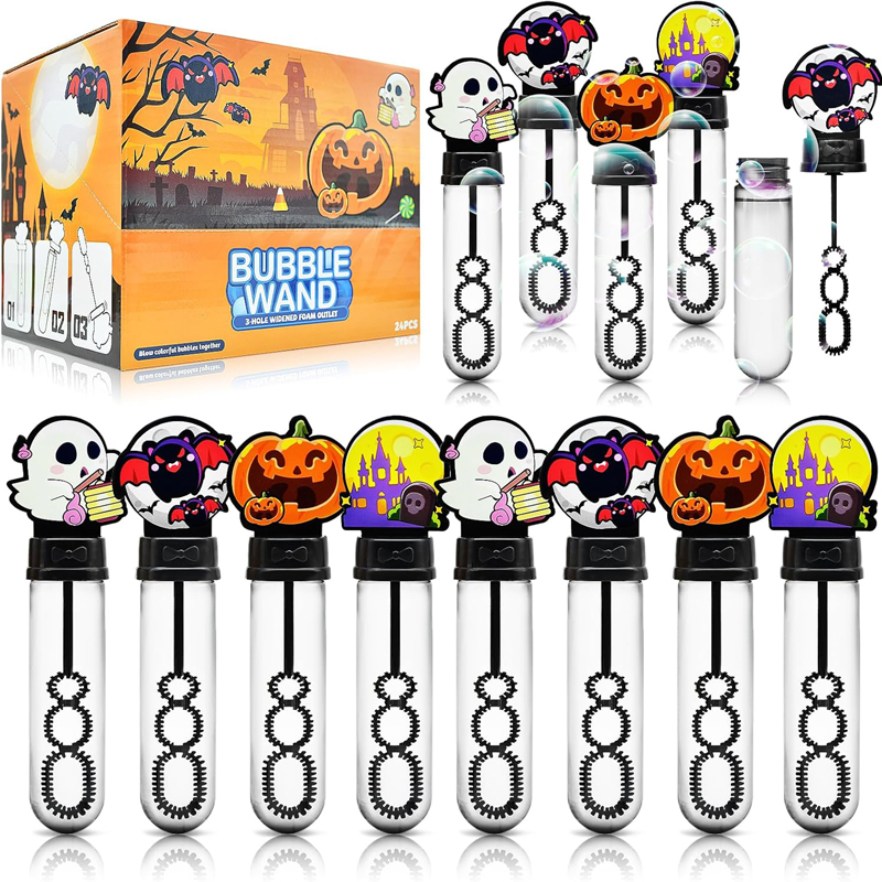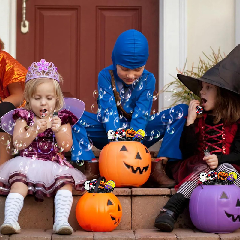 1.High-Quality Spooky-Themed Bubbles - Made from strong plastics, these bubble wands are built to withstand active play. Each wand holds approximately 1.2 ounces (35 ml) of bubble solution. The solution produces vibrant, long-lasting bubbles that kids will love to chase and pop. 2.Fun Ghost, Bat, and Pumpkin Bubble Wands - The set includes 24 bubble wands, each adorned with a fun, spooky topper such as ghosts, bats, and pumpkins. Standing about 5.6 inches tall, these wands are perfectly sized for young children. The thematic designs are ideal for Halloween and encourage imaginative play. 3.Easy to Play - These bubble wands are designed with a diameter of about 2.2 inches, making them easy for small hands to grip and handle. Kids can easily manage these wands to create streams of bubbles. This design ensures that children can enjoy the bubble-making process without any hassle. 4.Perfect Halloween Decorations - These bubble wands not only provide fun but also serve as excellent Halloween decorations. They can be used to enhance the spooky atmosphere at any party or event. Spread them around to add a festive touch to your Halloween setup. 5.Suitable for Various Occasions - Ideal for a broad range of events, these bubble wands are not just for Halloween. They also make great additions to birthday parties, school functions, and carnivals. Their adaptability ensures that they bring joy and a festive atmosphere to any child-focused gathering.