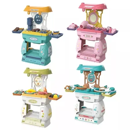 24 Pcs Pulley Storage Car 2 In 1 kitchen set toys for kids pretend play make up beauty toys
