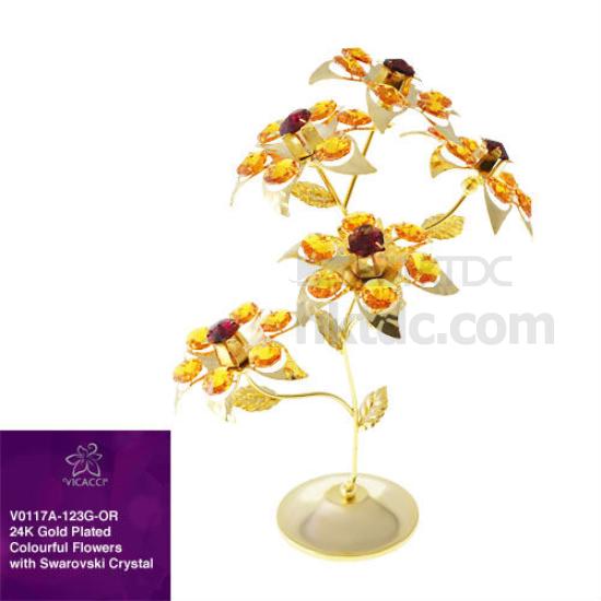 24K Gold Plated Colourful Flowers with Swarovski Crystal