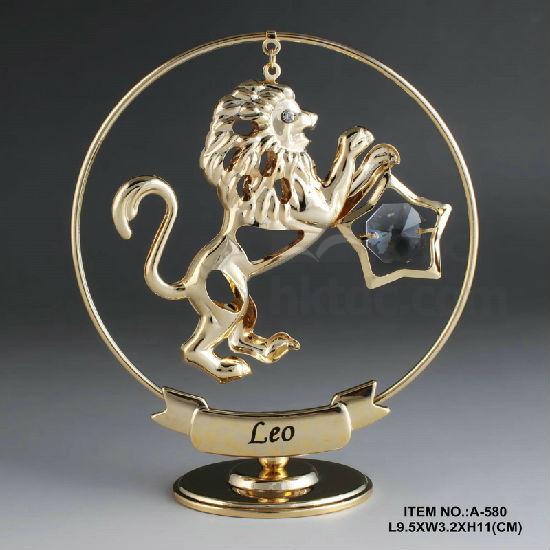 24K Gold Plated Metal Leo Zodiac Ring Stand with Swarovski Crystal